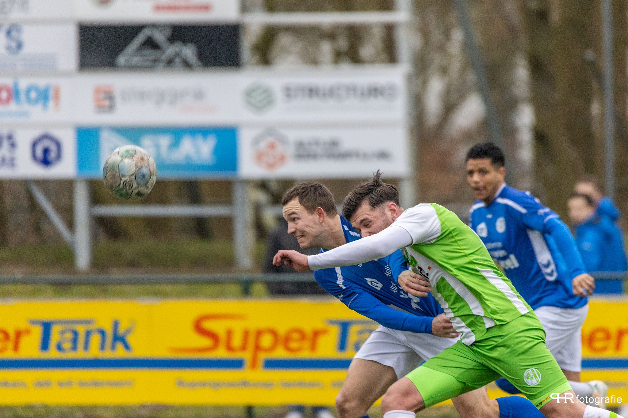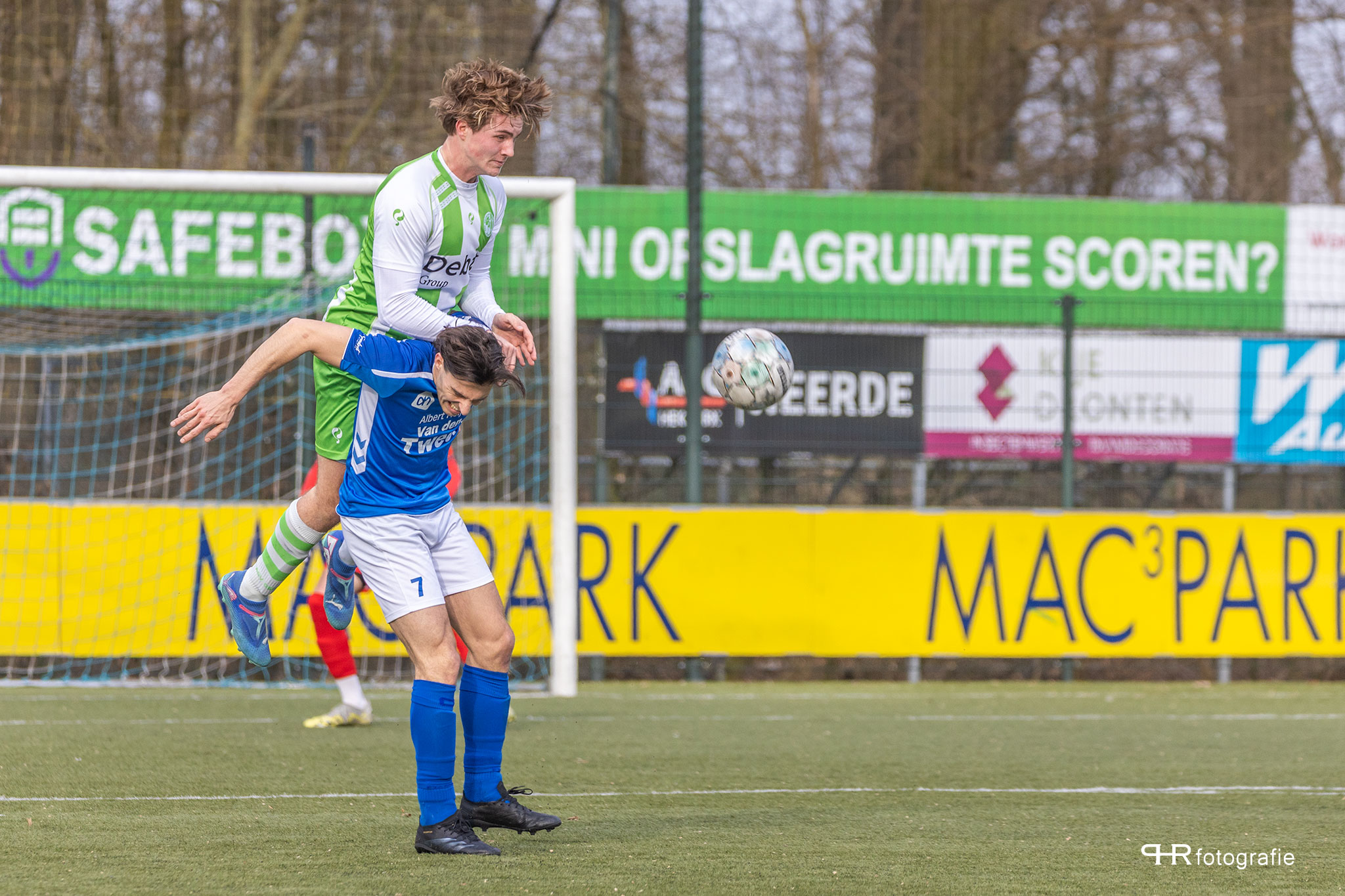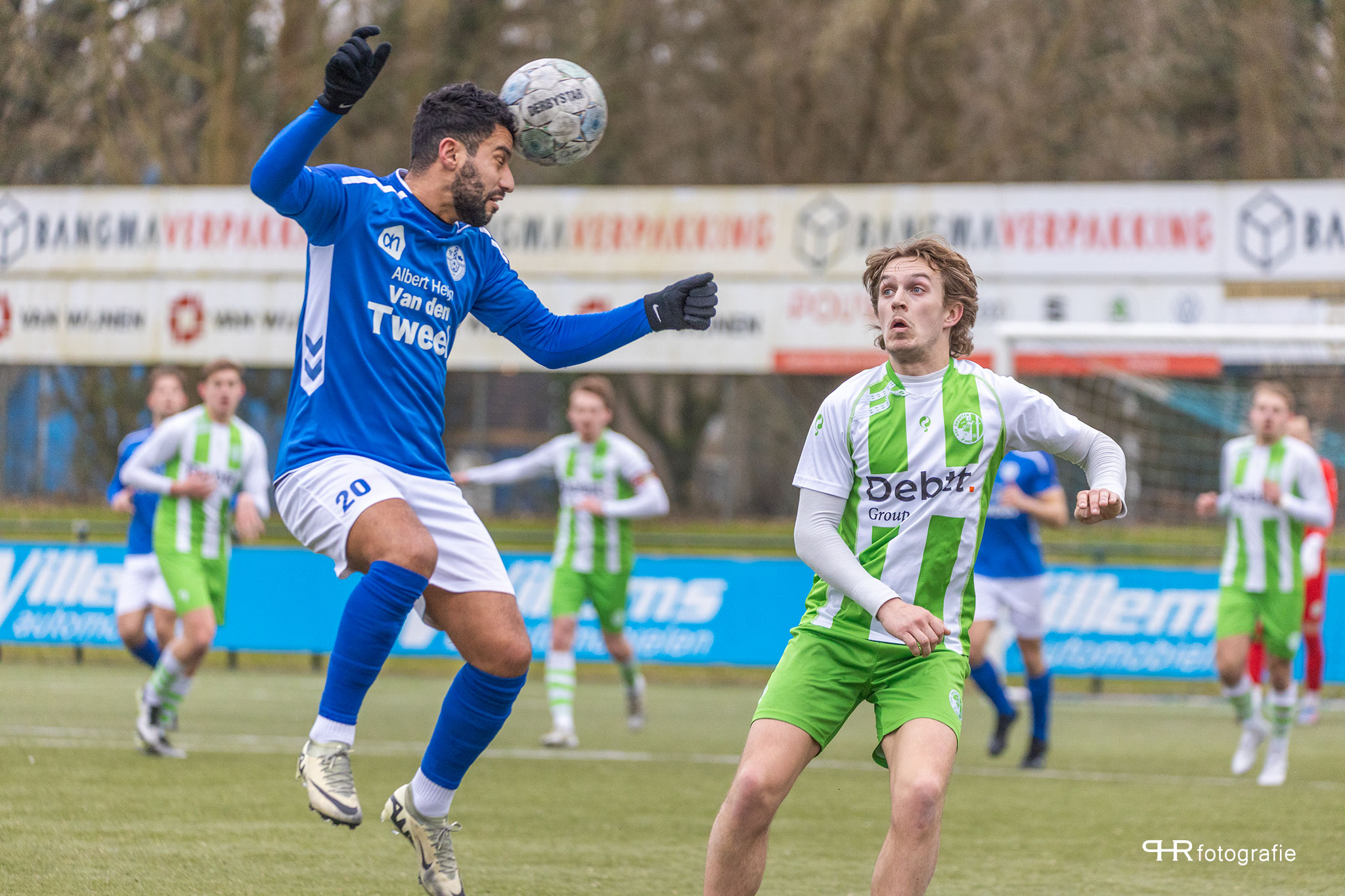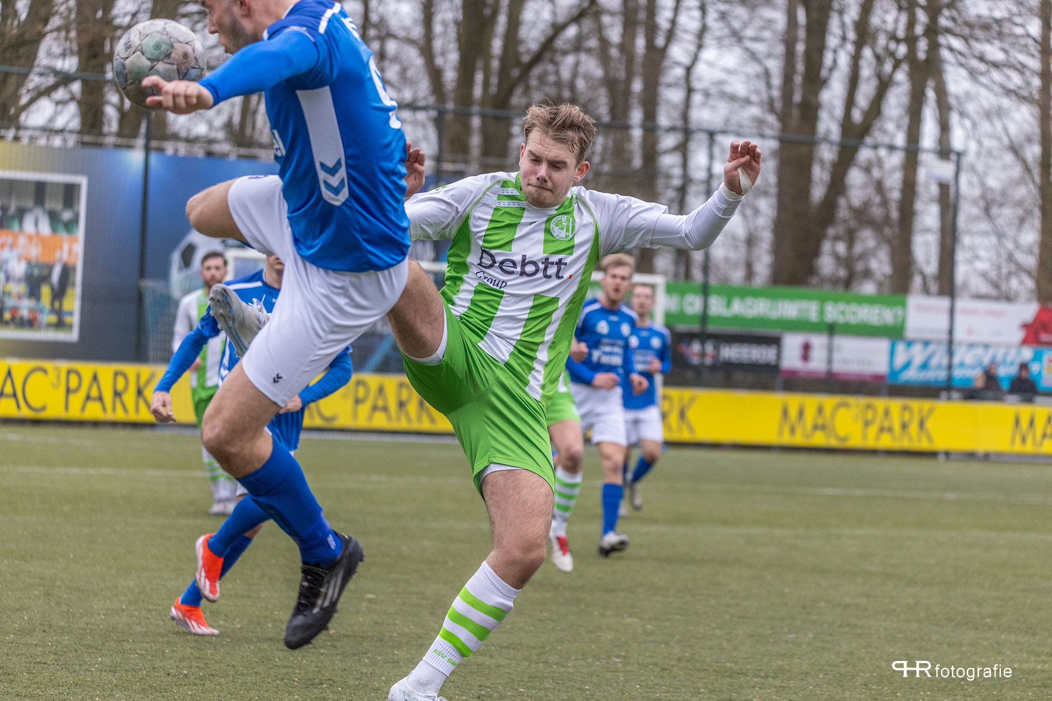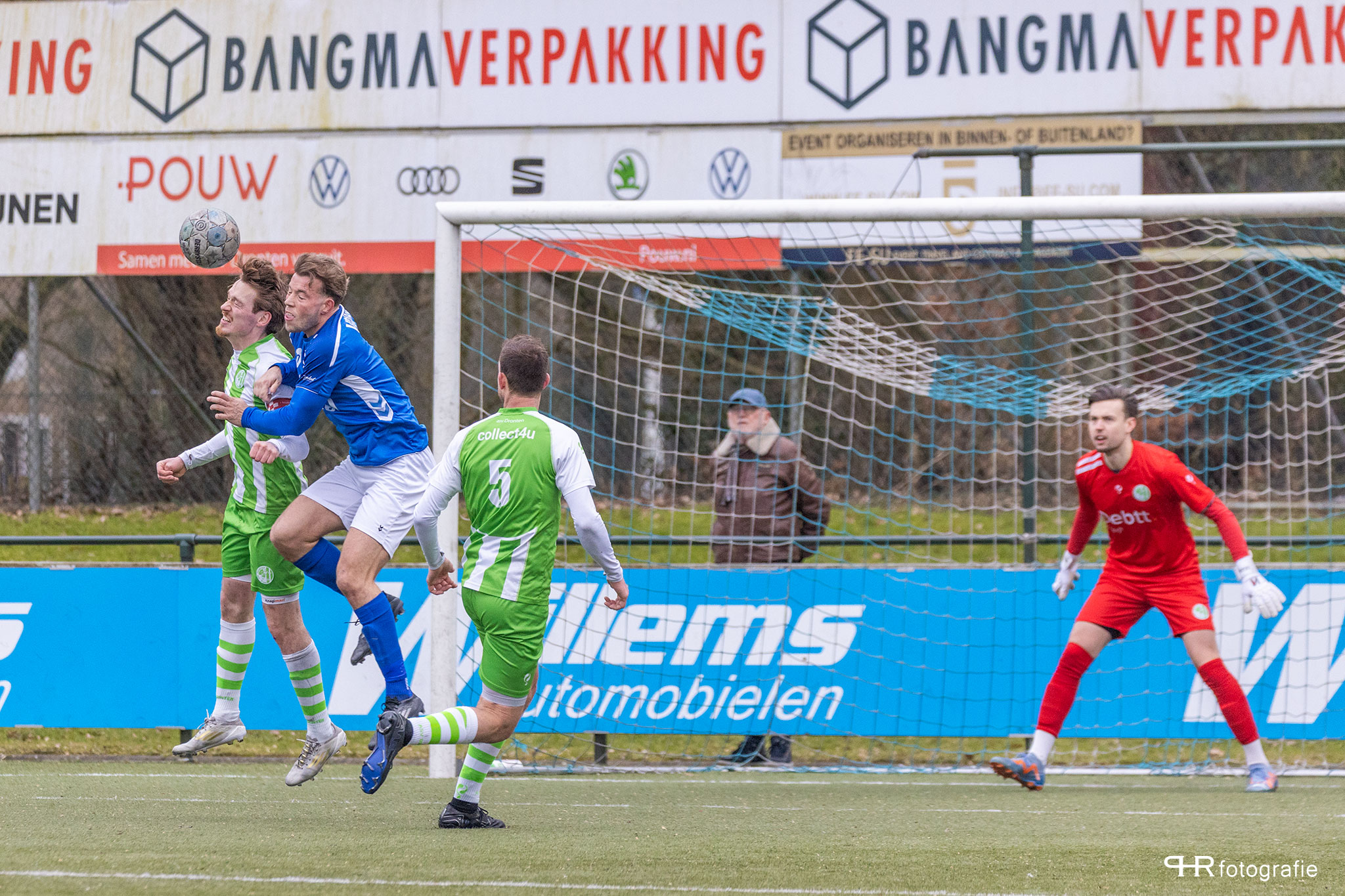 Hierbij deden de broertjes Breukelman een wedstrijdje: wie kan de bal het verste wegschieten, wat af en toe even voor lucht zorgde in de Dronter verdediging.