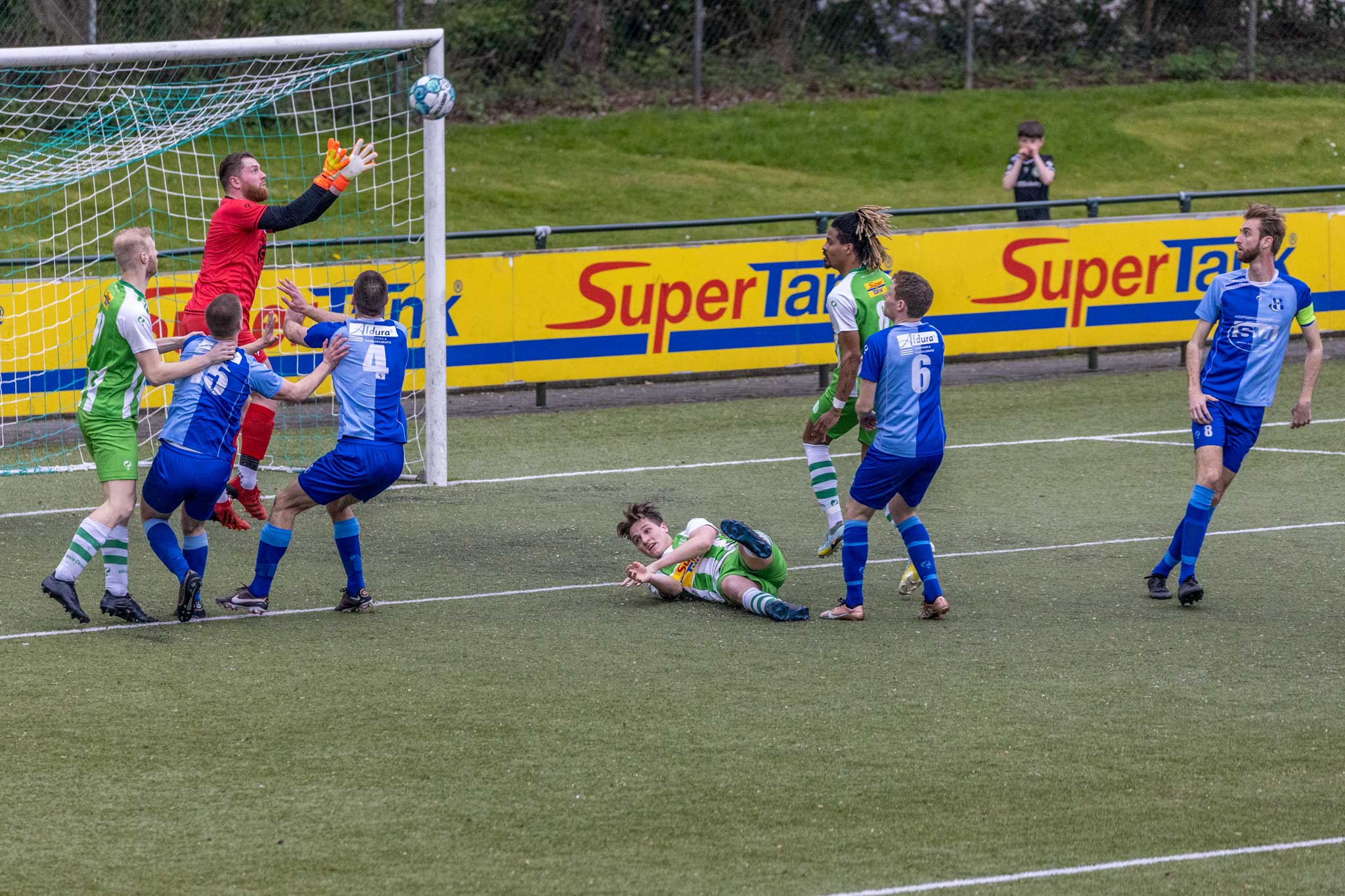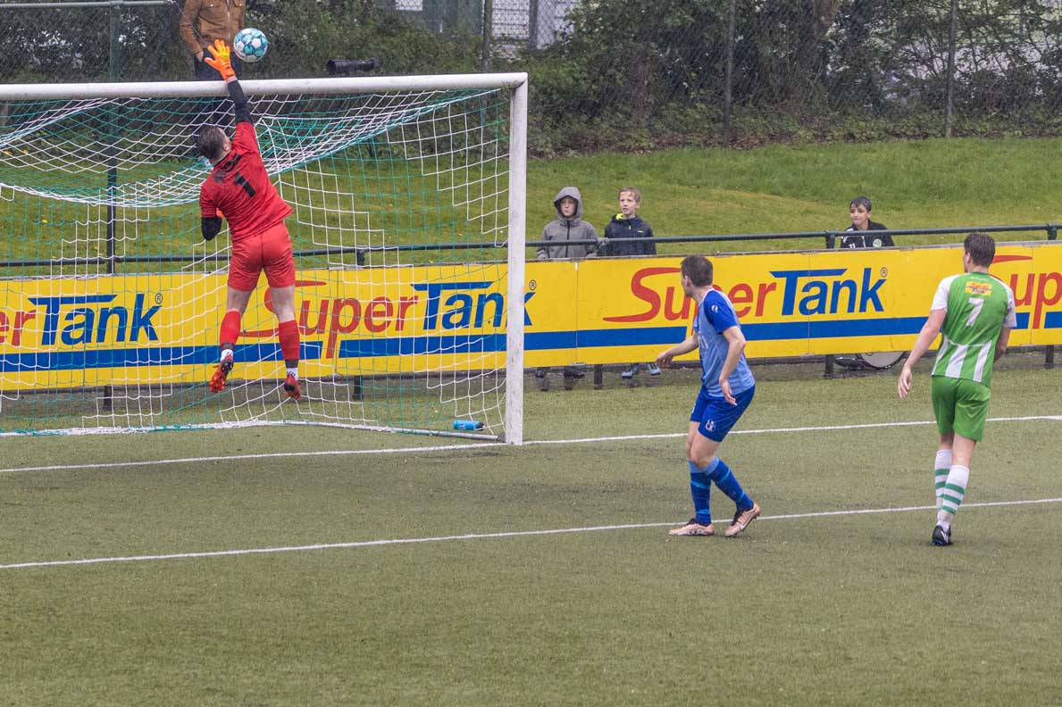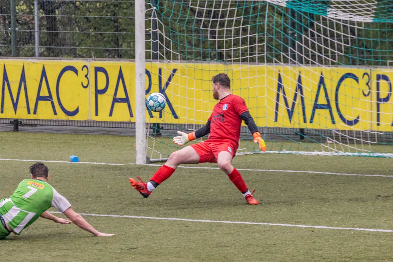 10 minuten voor tijd een hoge bal, die door Meulens meteen werd dood gelegd. Hij creëerde ruimte voor zichzelf, maar schoot helaas net naast.