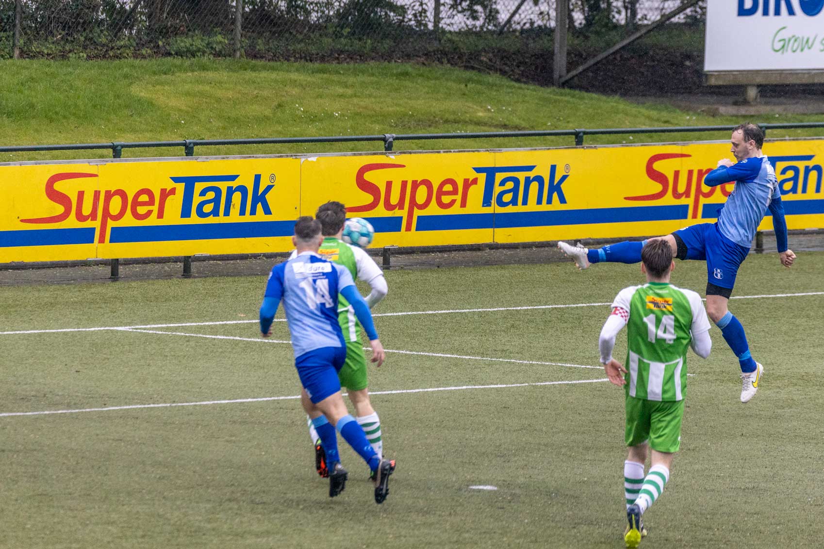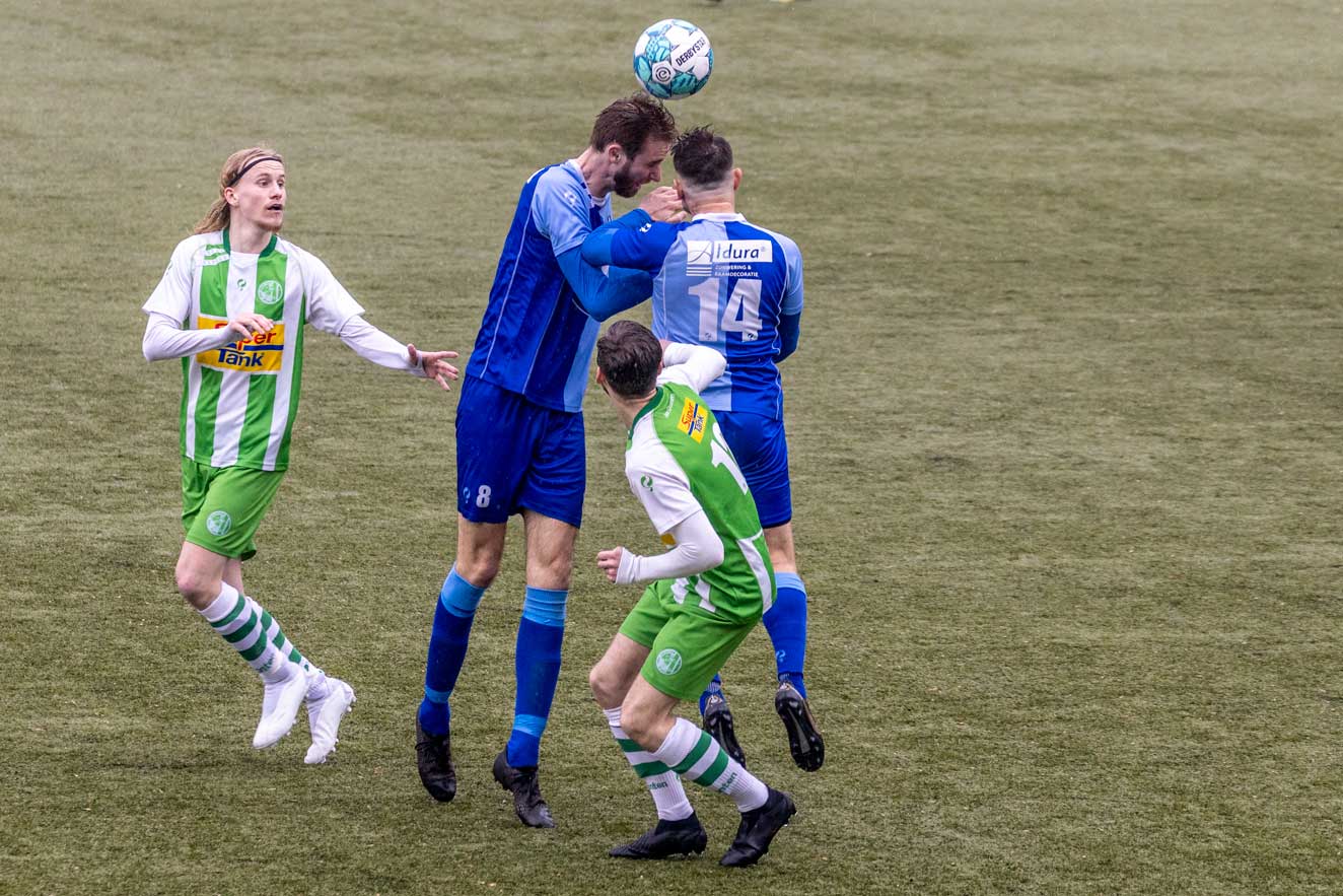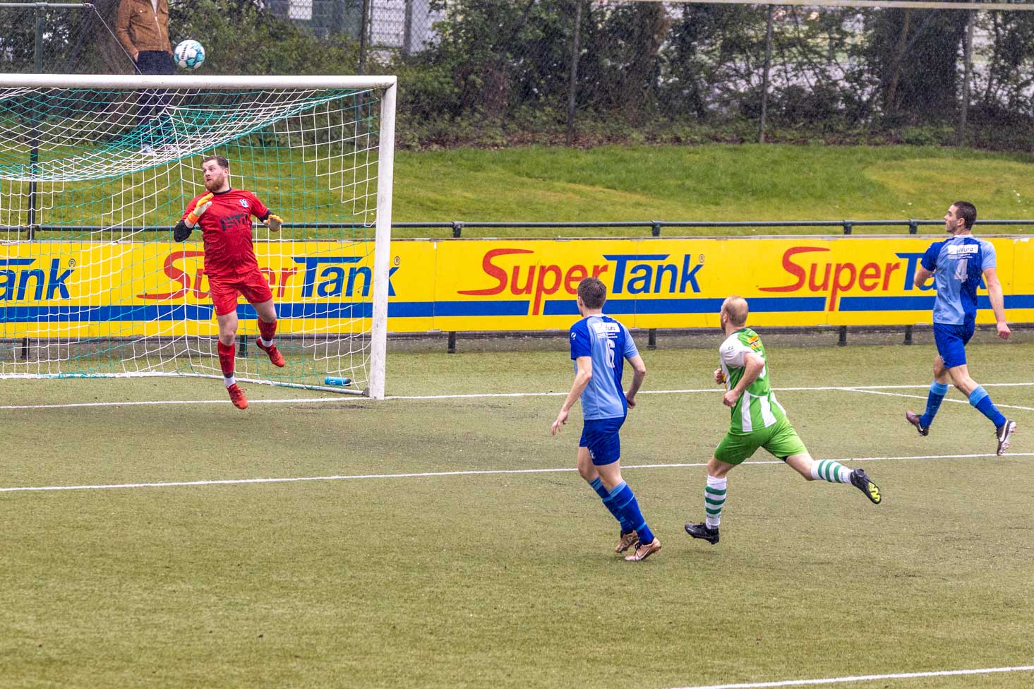 10 minuten voor tijd een hoge bal, die door Meulens meteen werd dood gelegd. Hij creëerde ruimte voor zichzelf, maar schoot helaas net naast.