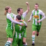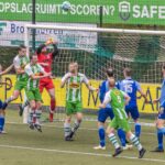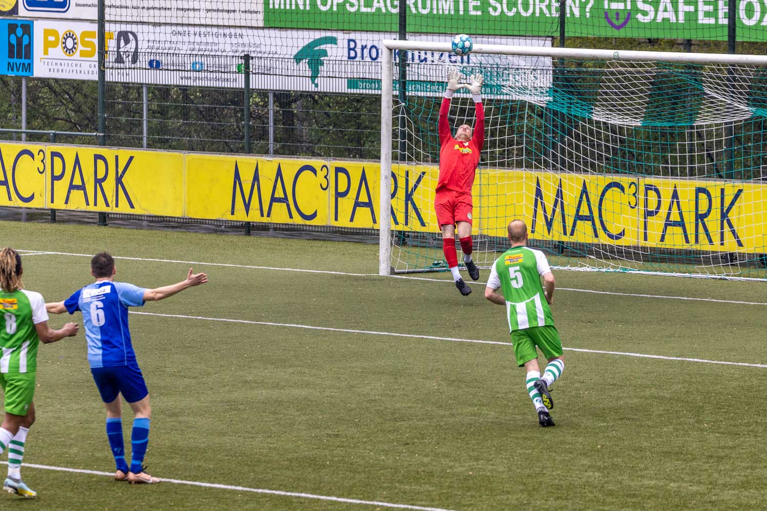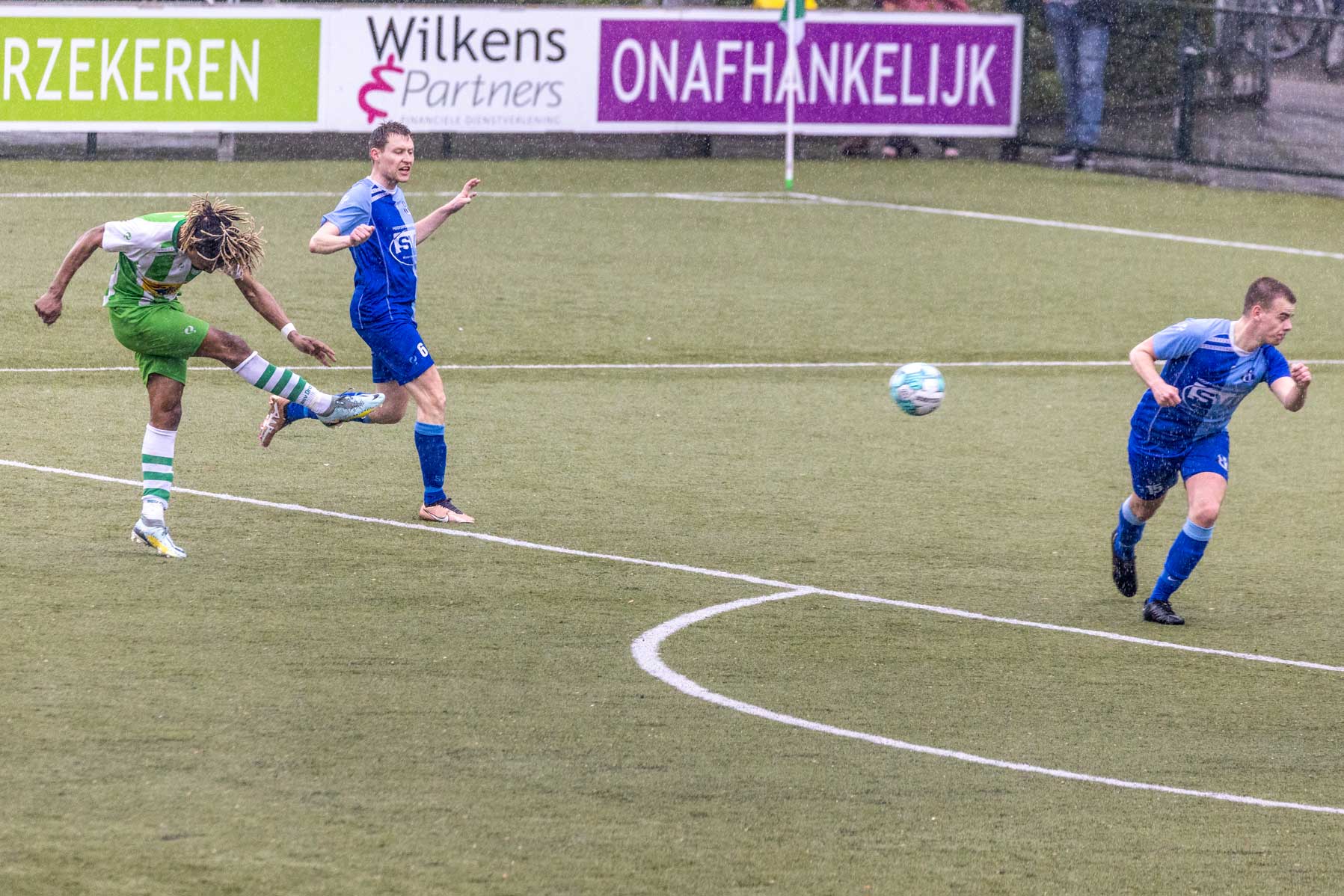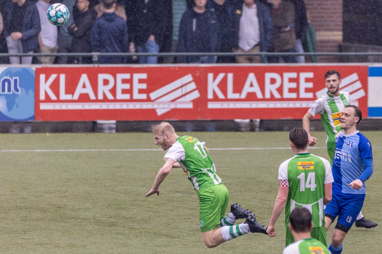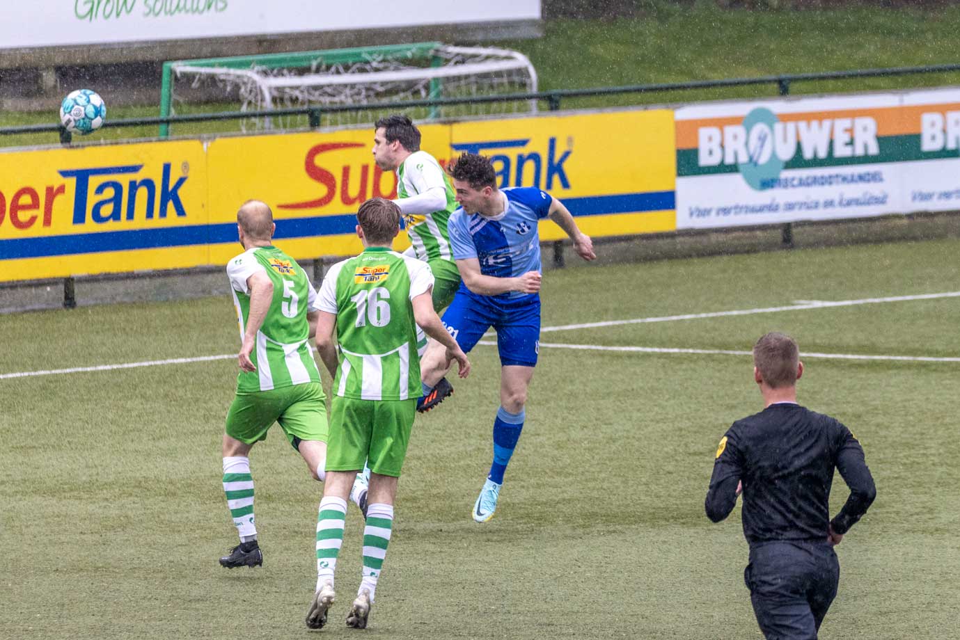 Een paar minuten na de wissel lukte dit ook. Laurens Brouwer, die een sterke wedstrijd speelde en overal goed tussen zat, liet zich aanvallend gelden. Een schot van zo’n 20 meter leek houdbaar, maar werd mede door de snelheid en het natte veld, volledig onderschat door de keeper: 3-0 en alles spelers en begeleiders doken op elkaar!