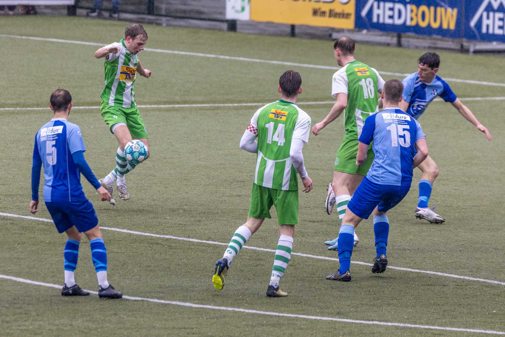 Om nog meer voetbal in de ploeg te krijgen werd Kevin van der Vlag binnen de lijnen gebracht. En 5 minuten later mocht Mark Veldman gaan douchen en kwam Niek Telgen het veld in. Posthuma wilde duidelijk doordrukken en de marge van 2 vergroten.