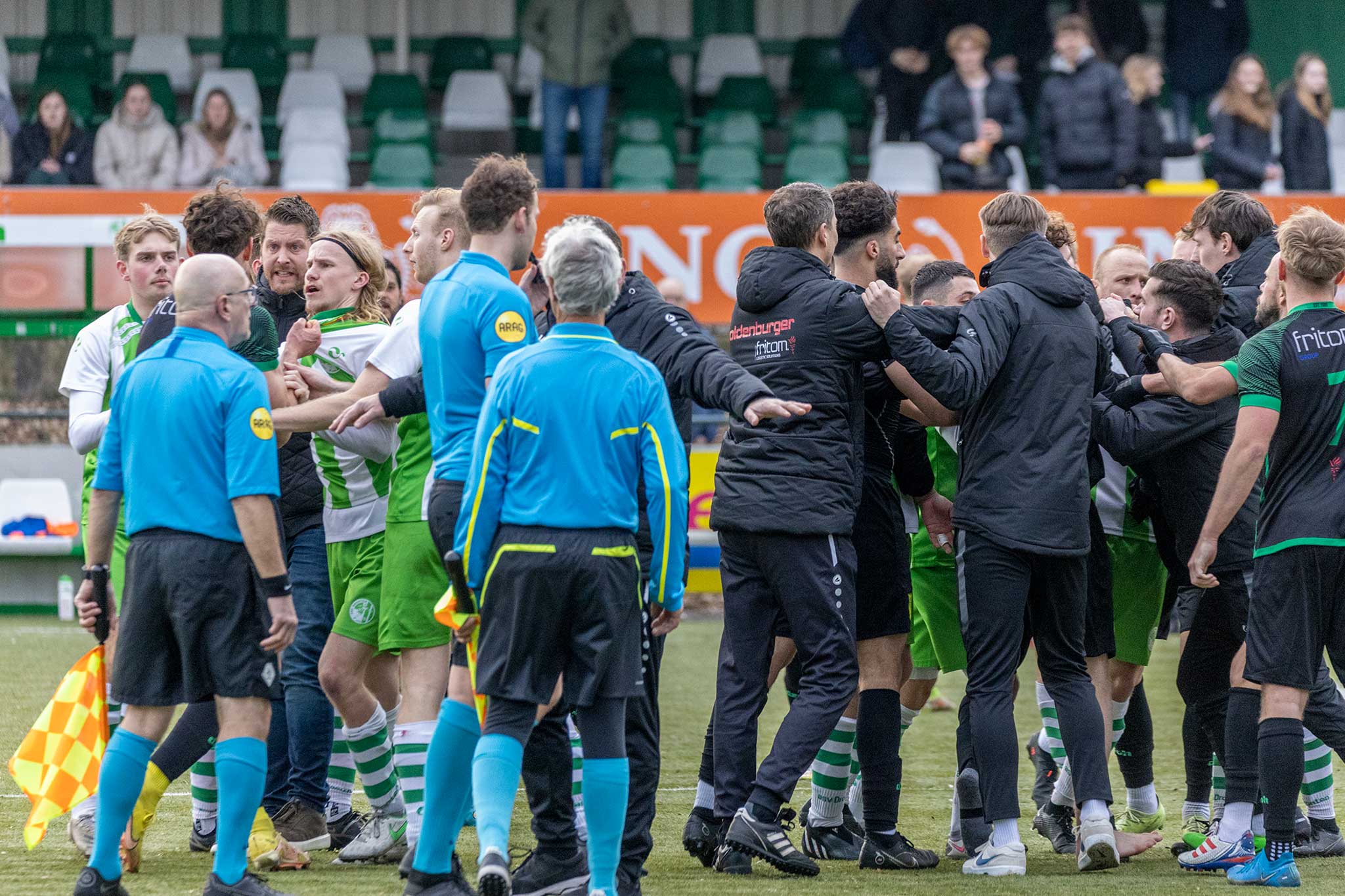 Voor DZOH en met name Anco Jansen eindigde de wedstrijd helemaal in mineur. Je zou verwachten als oud-prof dat hij zijn emoties onder controle zou kunnen houden, maar na te blijven zeuren en zelfs fysiek te worden richting de leidsman deze middag, kreeg hij na de wedstrijd zijn tweede gele kaart en dus rood.