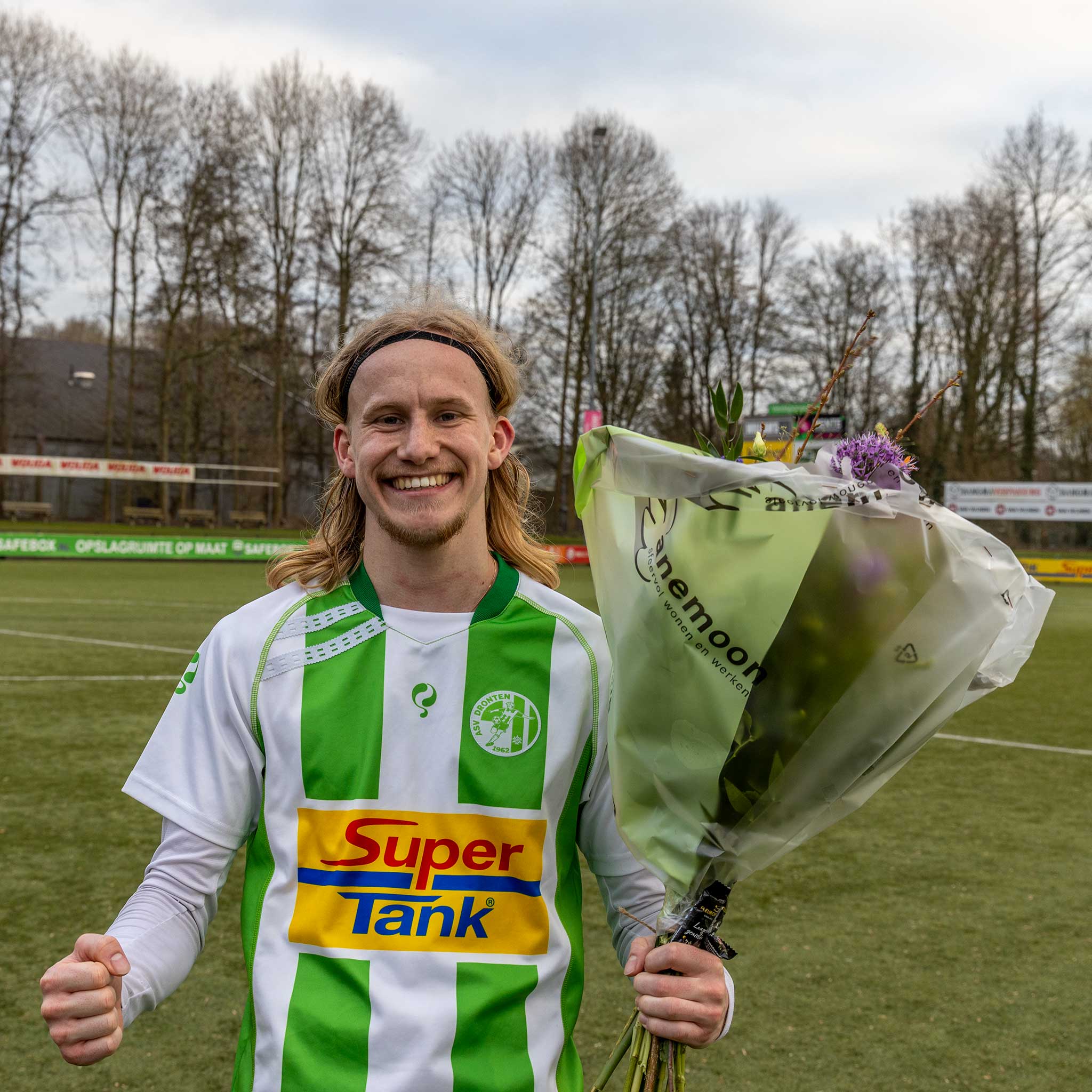 Dezelfde matchwinner mocht, mede om ook tijd te winnen, in de 92e minuut naar de kant en voor hem kwam Pim Breukelman.