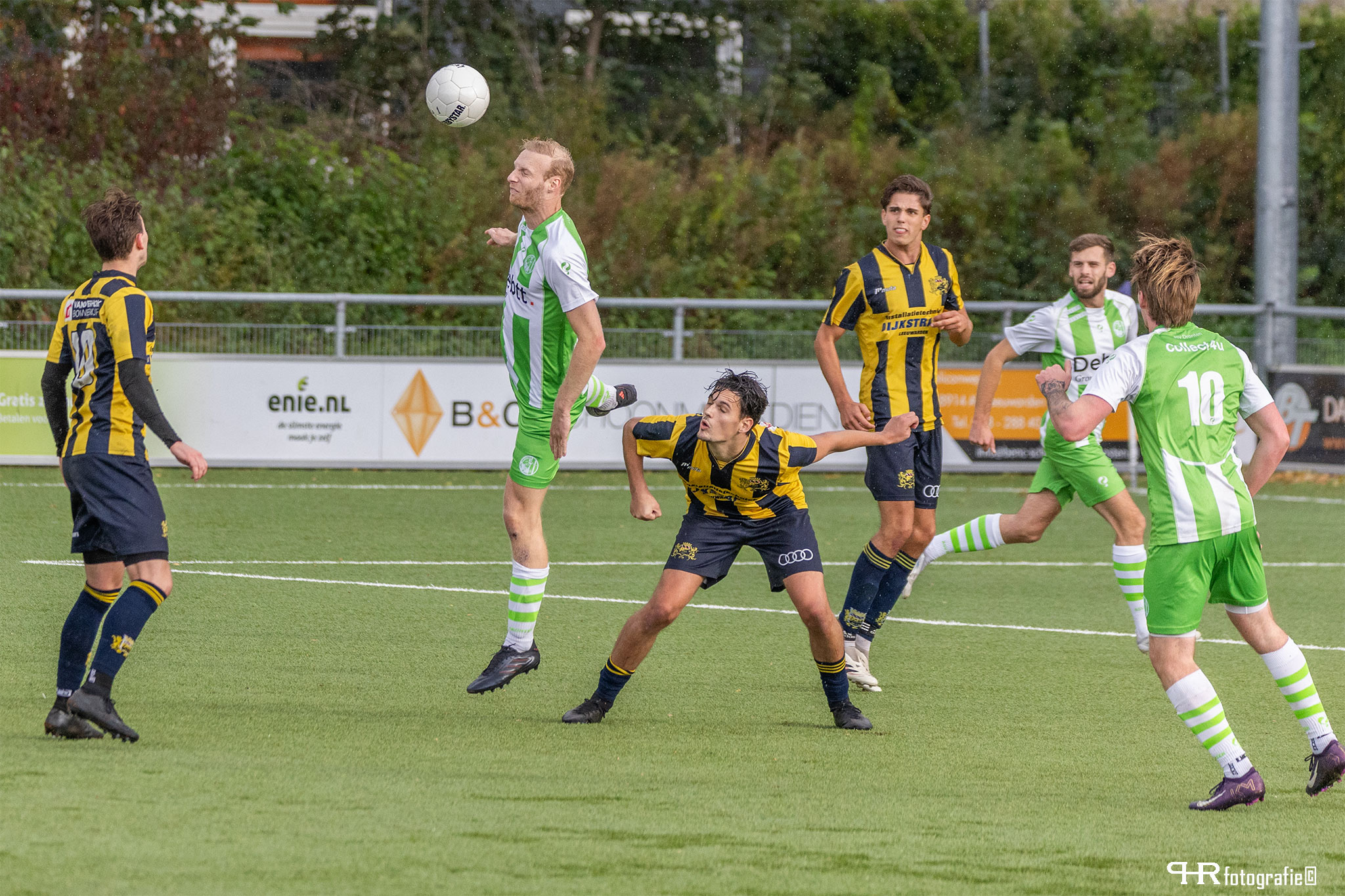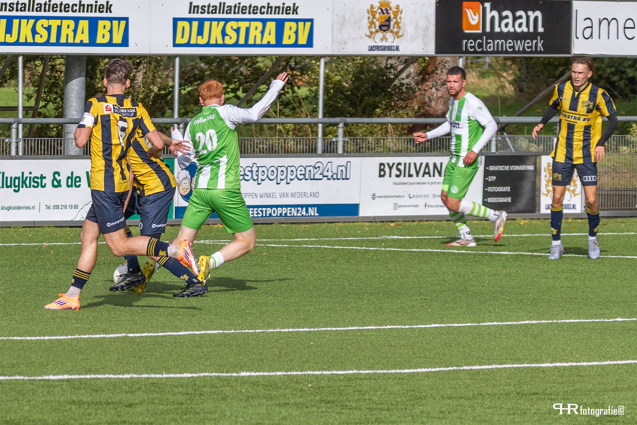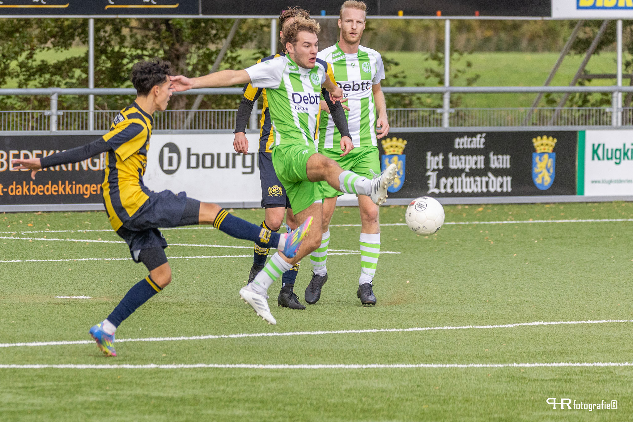De omstandigheden deze middag waren verre van perfect. Een harde wind stond schuin over het veld waardoor ballen te pas en te onpas uitvlogen. Ook het Leeuwarder kunstgras heeft betere tijden gekend. Als gewoon gras door kunstgras groeit wordt het tijd voor vervanging.