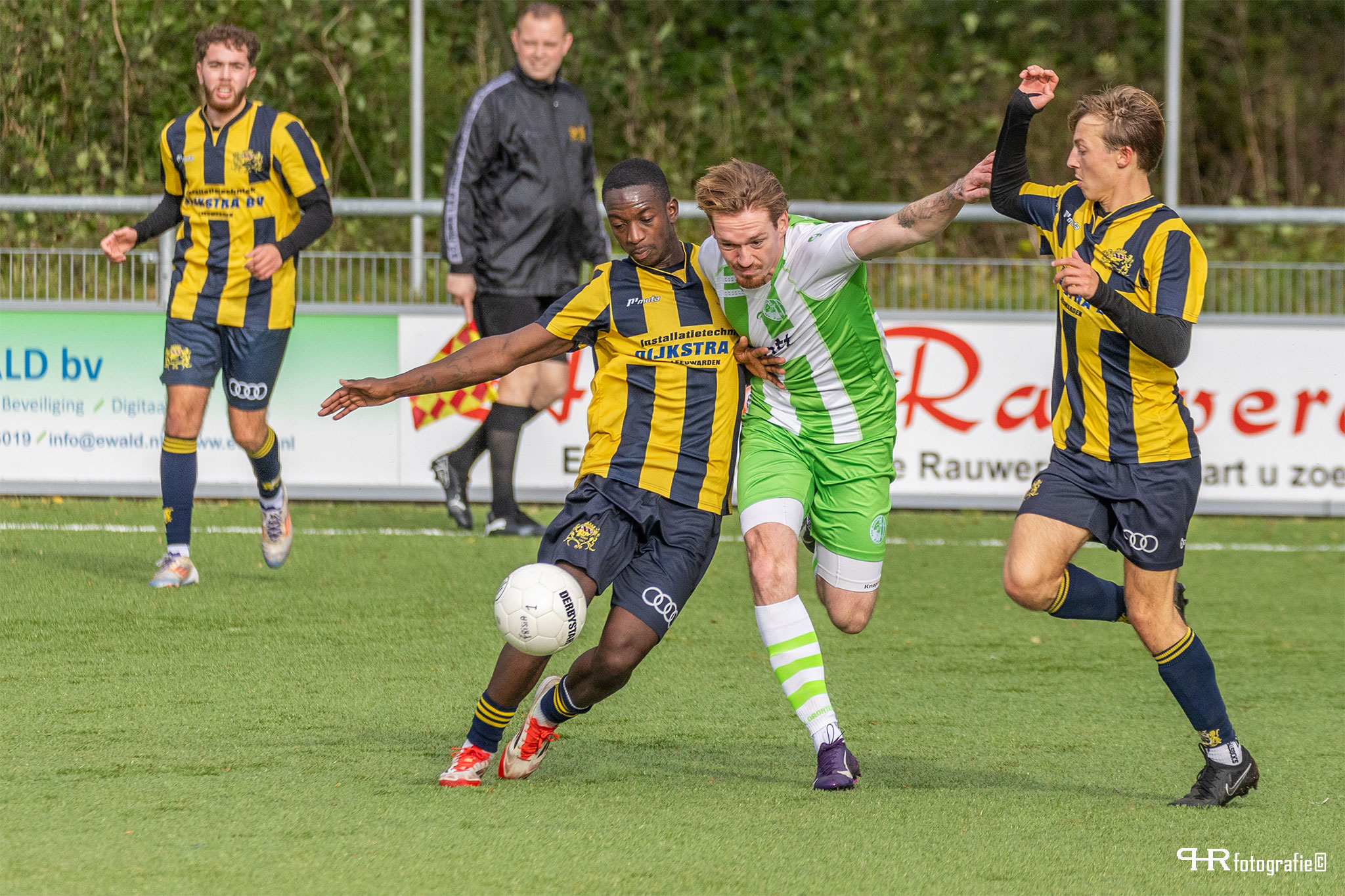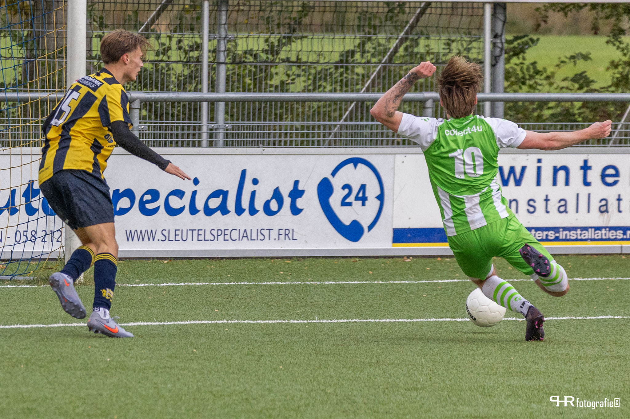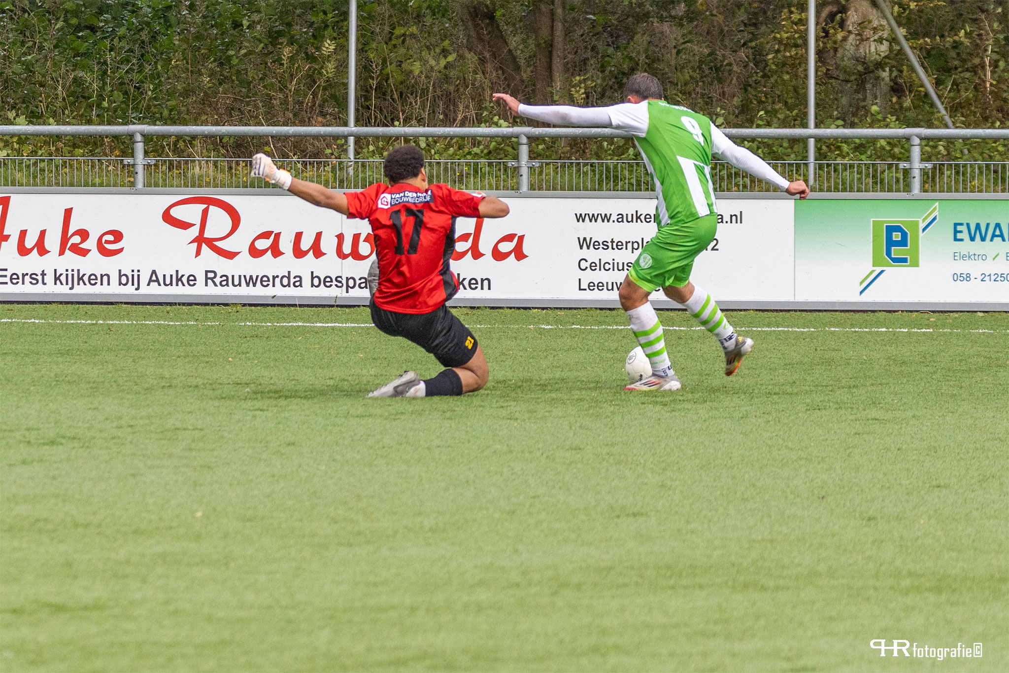 De omstandigheden deze middag waren verre van perfect. Een harde wind stond schuin over het veld waardoor ballen te pas en te onpas uitvlogen. Ook het Leeuwarder kunstgras heeft betere tijden gekend. Als gewoon gras door kunstgras groeit wordt het tijd voor vervanging.