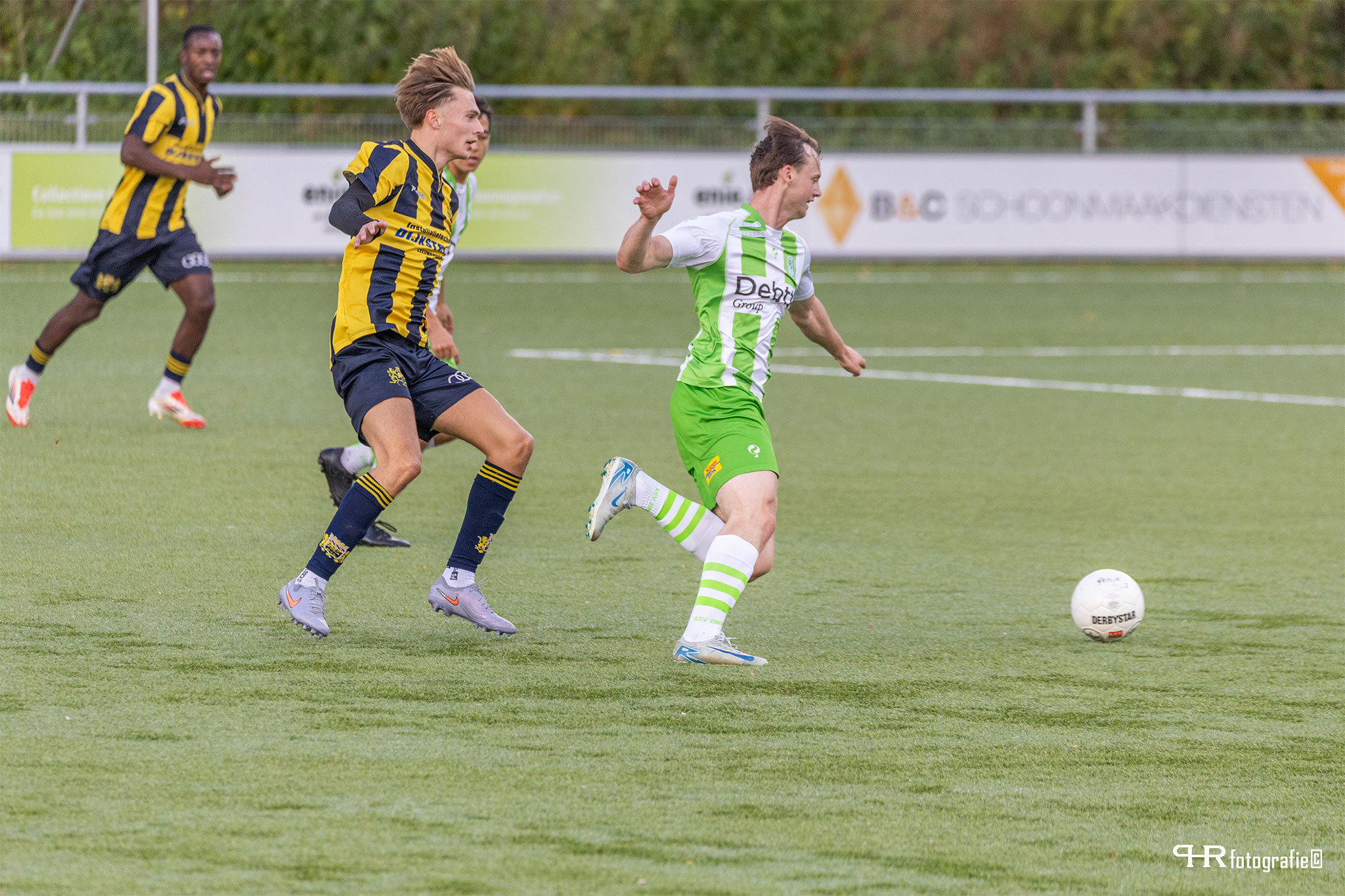 asv Dronten heeft de eerste 3 punter van het nieuwe seizoen binnen. Onder lastige omstandigheden (wind en regen) wonnen de groen–witten, na een 0 – 1 ruststand, met 0 – 3 door doelpunten van Julian de Ruiter (2x) en Yordi Schols van LAC Frisia 1883. Dronten had vanmiddag het geluk aan haar zijde. De tegenstander vergat in de 1e helft tal van kansen af te maken en de 0 – 1 werd vanuit een buitenspelsituatie gescoord. Niemand zal erom malen. Soms zit het mee en soms tegen (zoals zuiver doelpunt Taha 2 weken geleden).