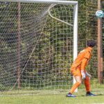 Een vrije trap van Willem Jelle Bos werd ternauwernood gekeerd door de doelman.