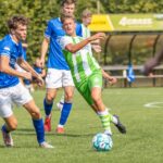 Uit een strakke voorzet van Willem Jelle Bos schoot Dylan van der Stoel naast en even later vond Dylan de doelman van WVF op zijn weg.