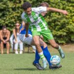 Ondanks de felle zon en warmte lieten beide teams een hoog tempo met een flinke portie strijd en inzet zien.