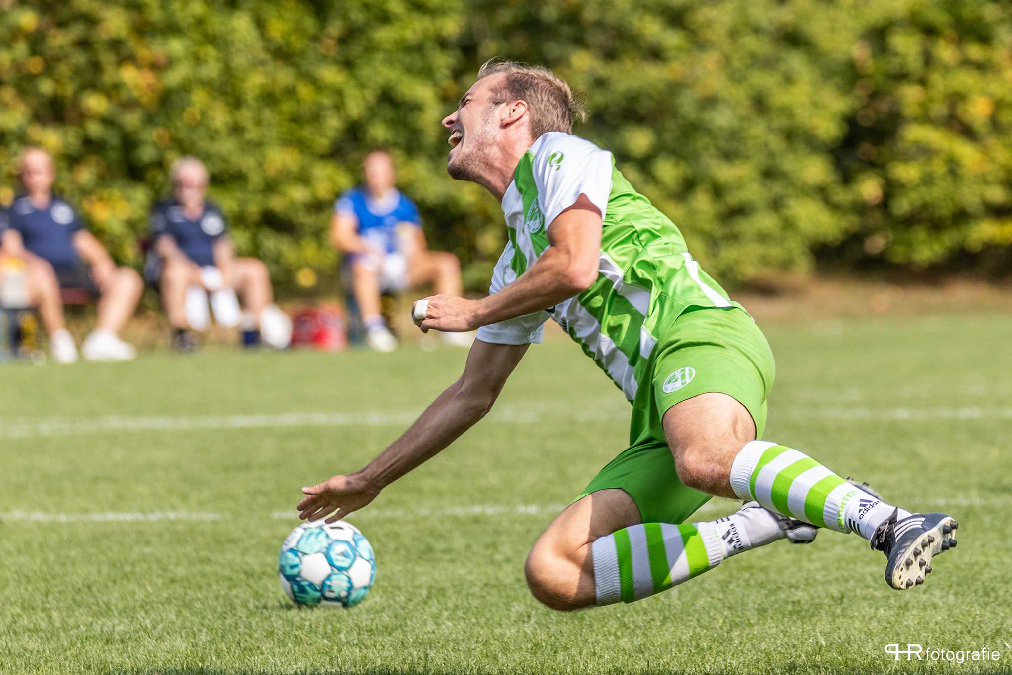 Ondanks de felle zon en warmte lieten beide teams een hoog tempo met een flinke portie strijd en inzet zien.