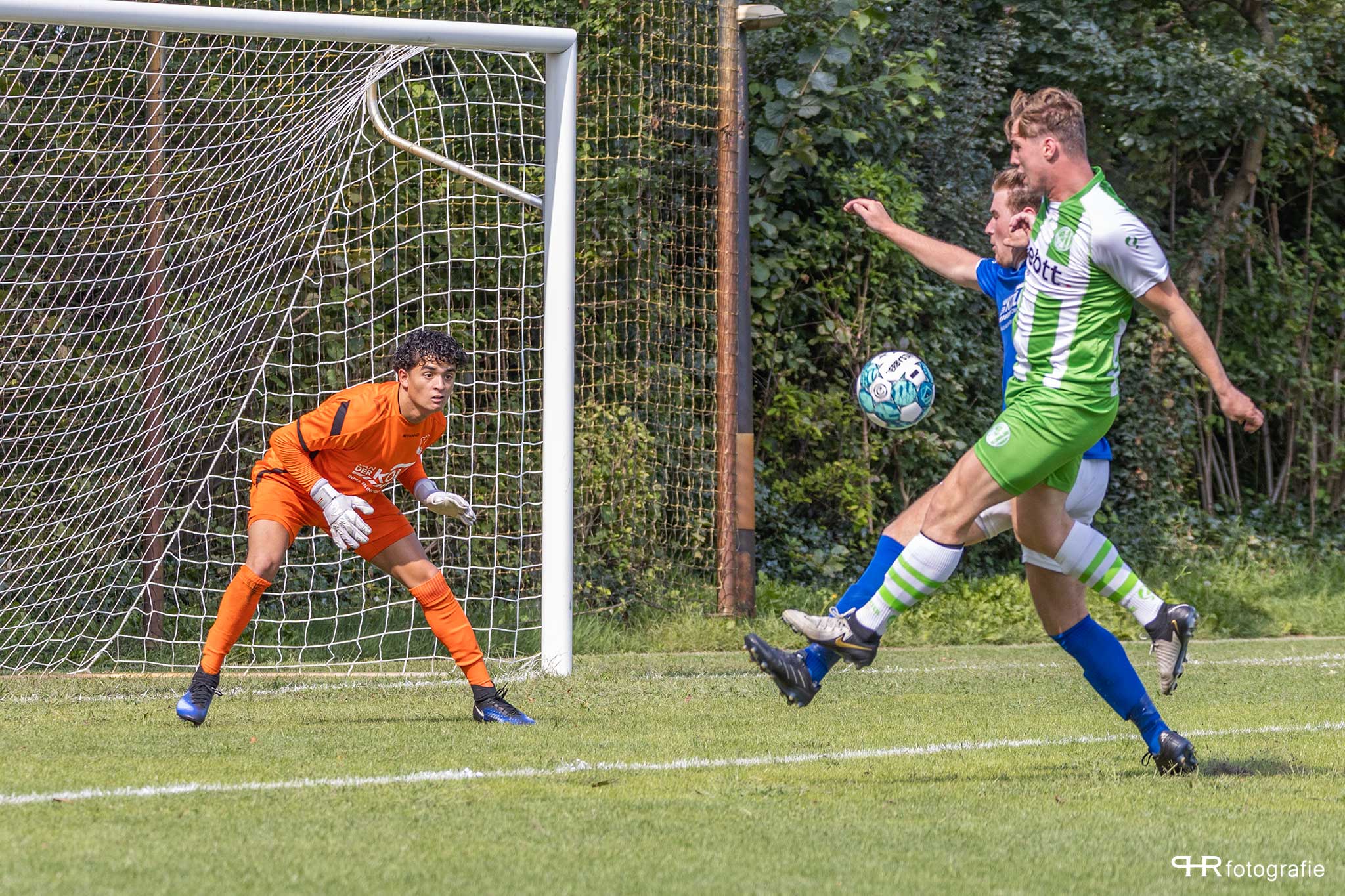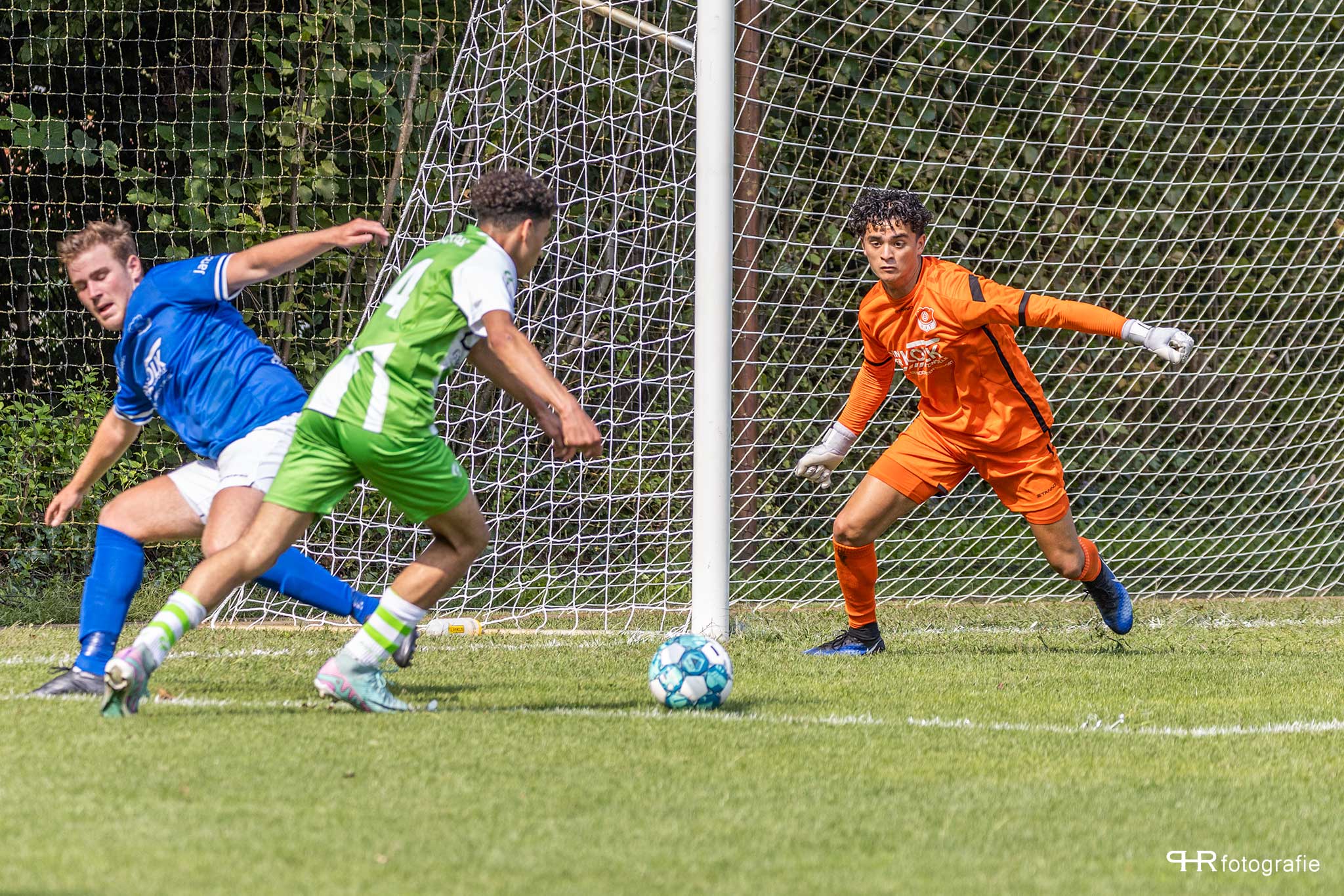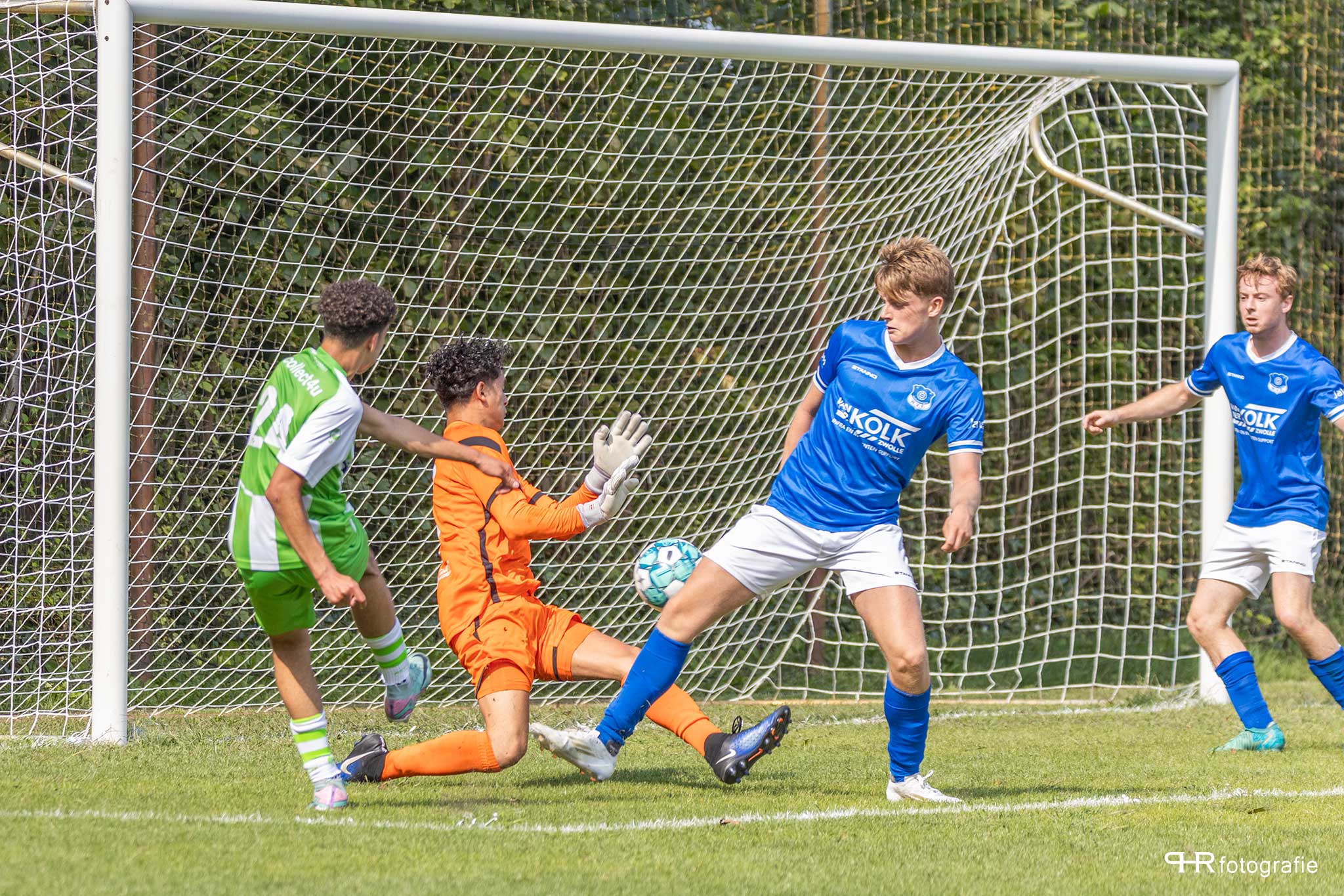 Uit een strakke voorzet van Willem Jelle Bos schoot Dylan van der Stoel naast en even later vond Dylan de doelman van WVF op zijn weg.