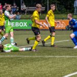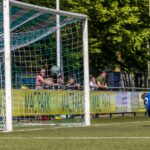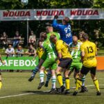 Niet lang hierna een hoge bal die bij de 2e paal belandde en door van der Vlag met een volley richting doel werd geschoten, maar hij raakte slechts het zijnet!