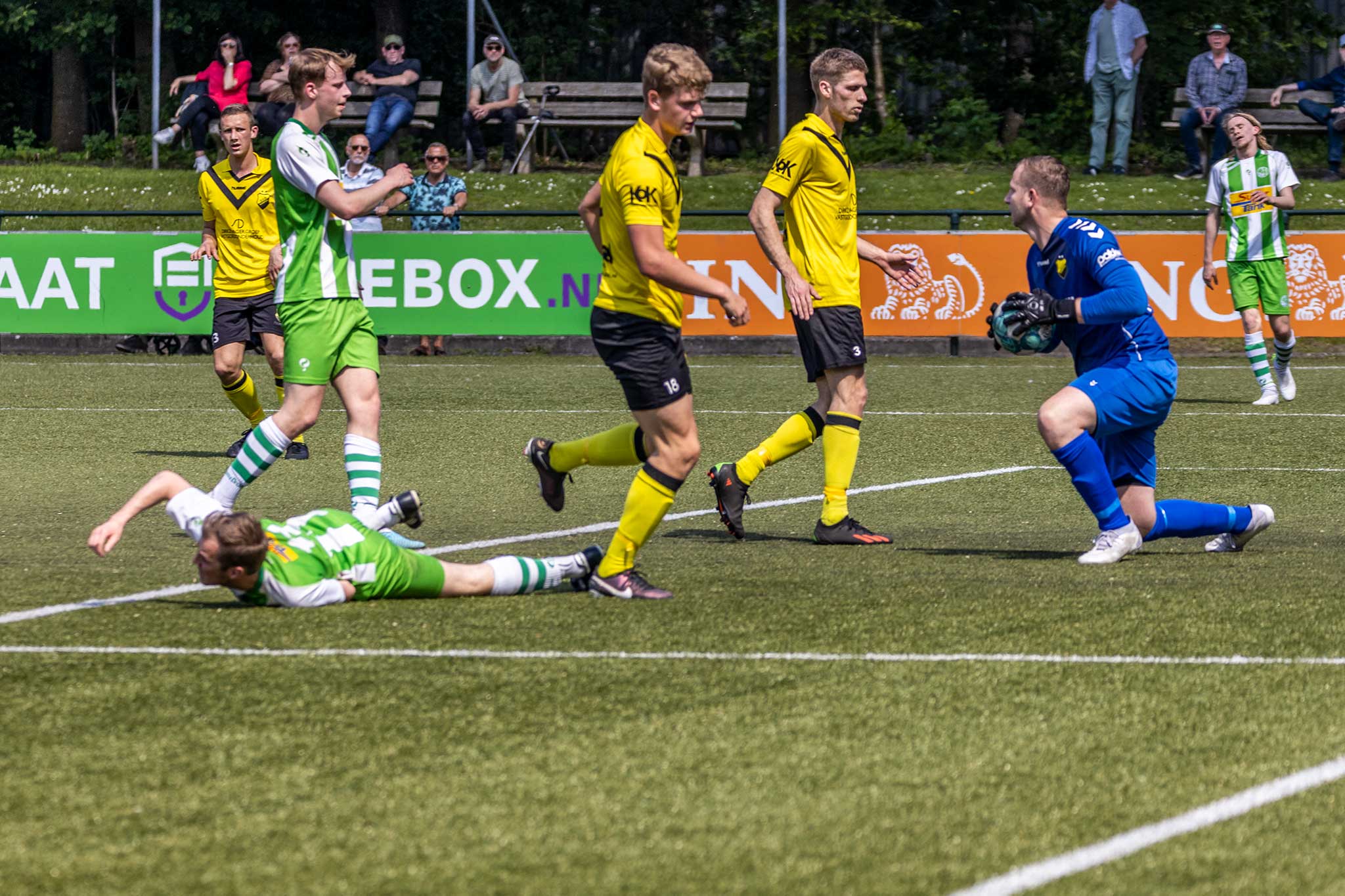 Dos Kampen kwam in minuut 35 even gevaarlijk opzetten en Allan Bakker leek zichzelf een kans te verschaffen, maar hij nam de bal niet goed aan, waardoor de kans strandde in schoonheid.