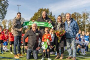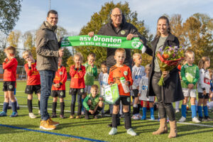 Zaterdag kreeg de zes jarige Quinn Brouwer in het bijzijn van zijn ouders en vriendjes naast bloemen ook een asv Dronten sjaal, vaantje en een mooie originele groene bidon met clublogo uitgereikt.