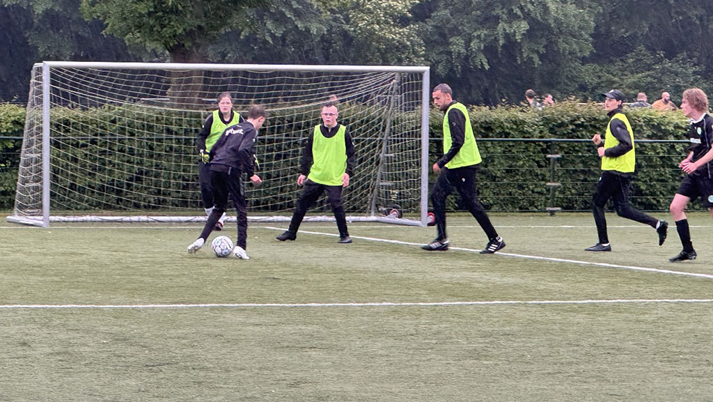 Maar wie denkt dat het alleen maar om de strijd ging, heeft het mis. Juist de combinatie van deze sportieve felheid en het onmiskenbare plezier maakte deze avond zo uniek en waardevol. De lach was niet van de gezichten te slaan, zowel bij de spelers van het G-Team als bij de mannen van het eerste, en die vreugde sloeg over op iedereen die aanwezig was. High fives werden kwistig uitgedeeld na een mooie actie of een doelpunt, aanmoedigingen vlogen over en weer, en zelfs een mislukte pass werd met een knipoog en een glimlach ontvangen. De begeleiders van beide teams werkten naadloos samen, zorgden voor een vlekkeloos verloop en droegen bij aan de positieve, veilige sfeer waarin iedereen kon excelleren.
