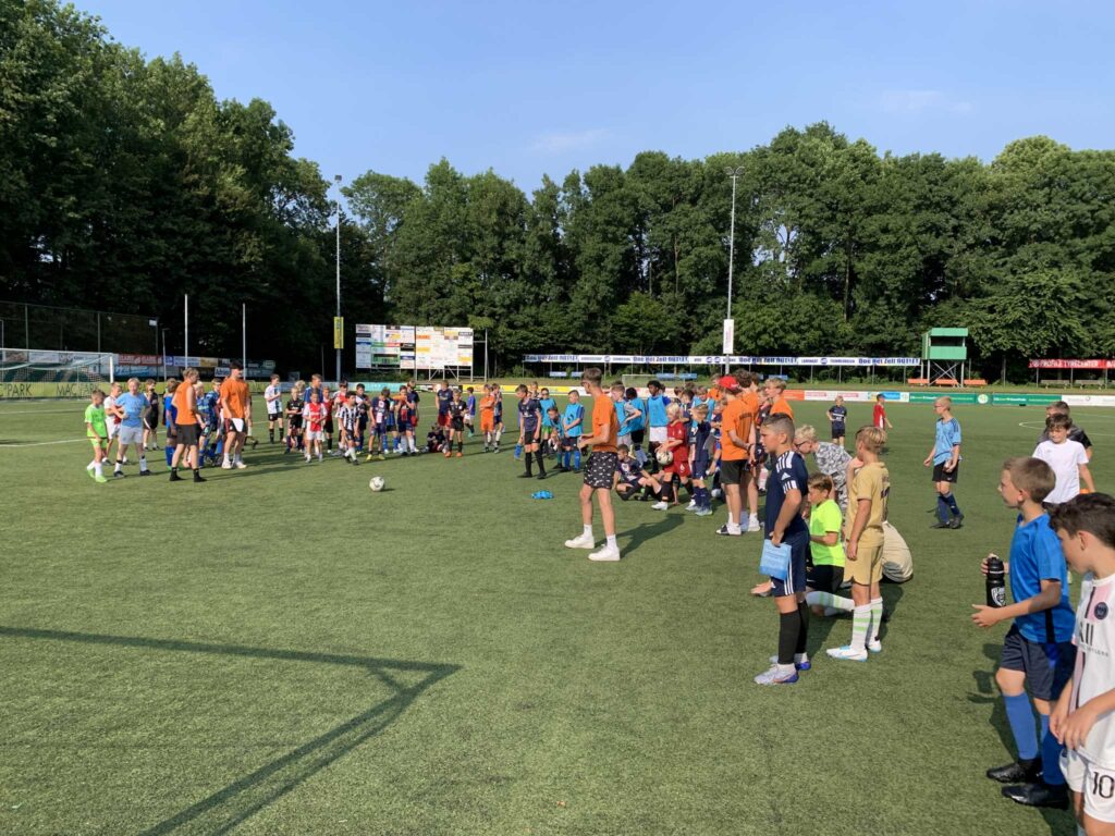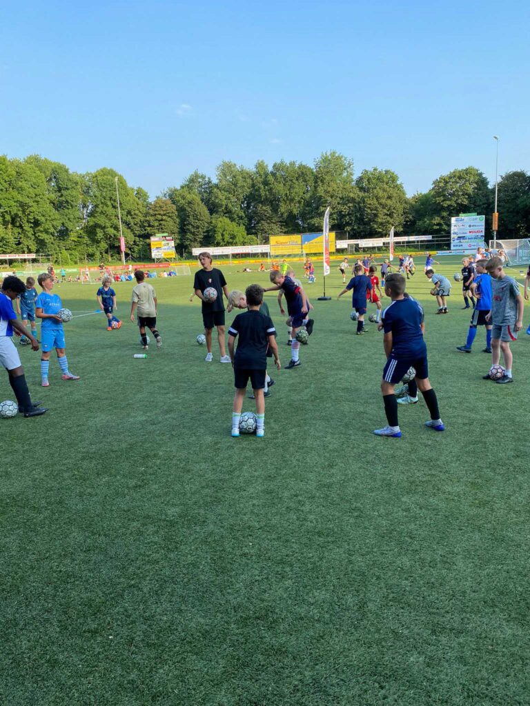 Tijdens een zonovergoten weekend vonden bijna 200 jeugdspelers van asv Dronten hun weg richting het sportpark voor de DV Trading Voetbalkampen.