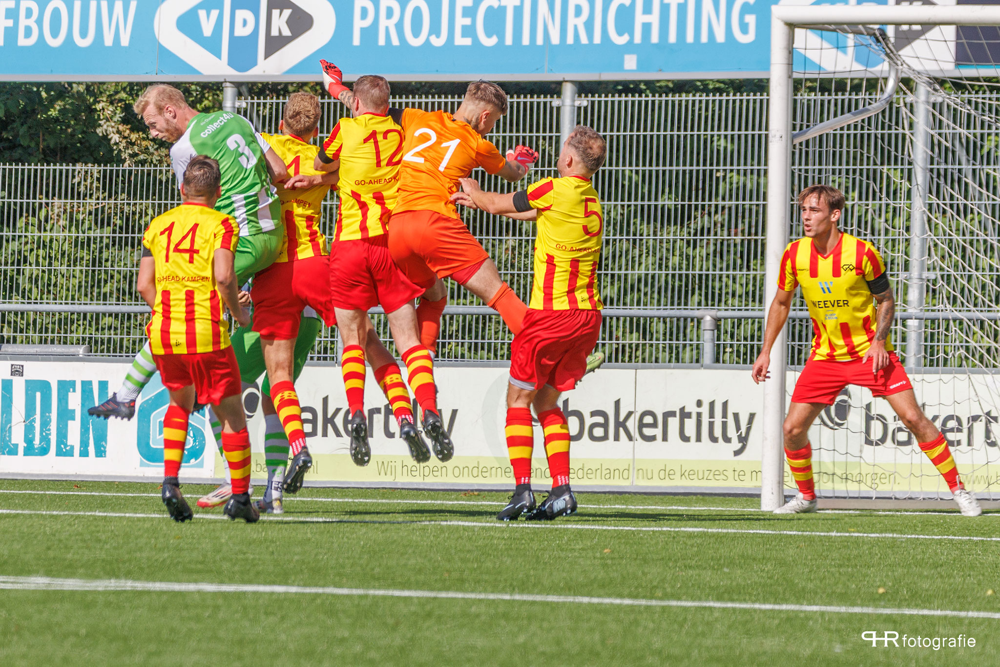 asv Dronten heeft de 2e bekerwedstrijd tegen Go Ahead Kampen met 1 – 1 gelijk gespeeld. Door het gelijke spel en het verrassende verlies van KHC bij CSV’28 (5 -3) is Dronten koploper in de poule. De bekerstrijd is nog niet gestreden en asv Dronten zal volgende week minimaal gelijk moeten spelen om als 1 van de 2 ploegen naar de volgende ronde te gaan. Go Ahead kwam in de 63e minuut op een 1 – 0 voorsprong. Invaller Taha Fawzi soorde in de 88e minuut de gelijkmaker voor asv Dronten. Grote uitblinker deze middag was Dronter doelman Dean Bredewolt, die vele cruciale reddingen verrichtte en asv Dronten op de been hield.