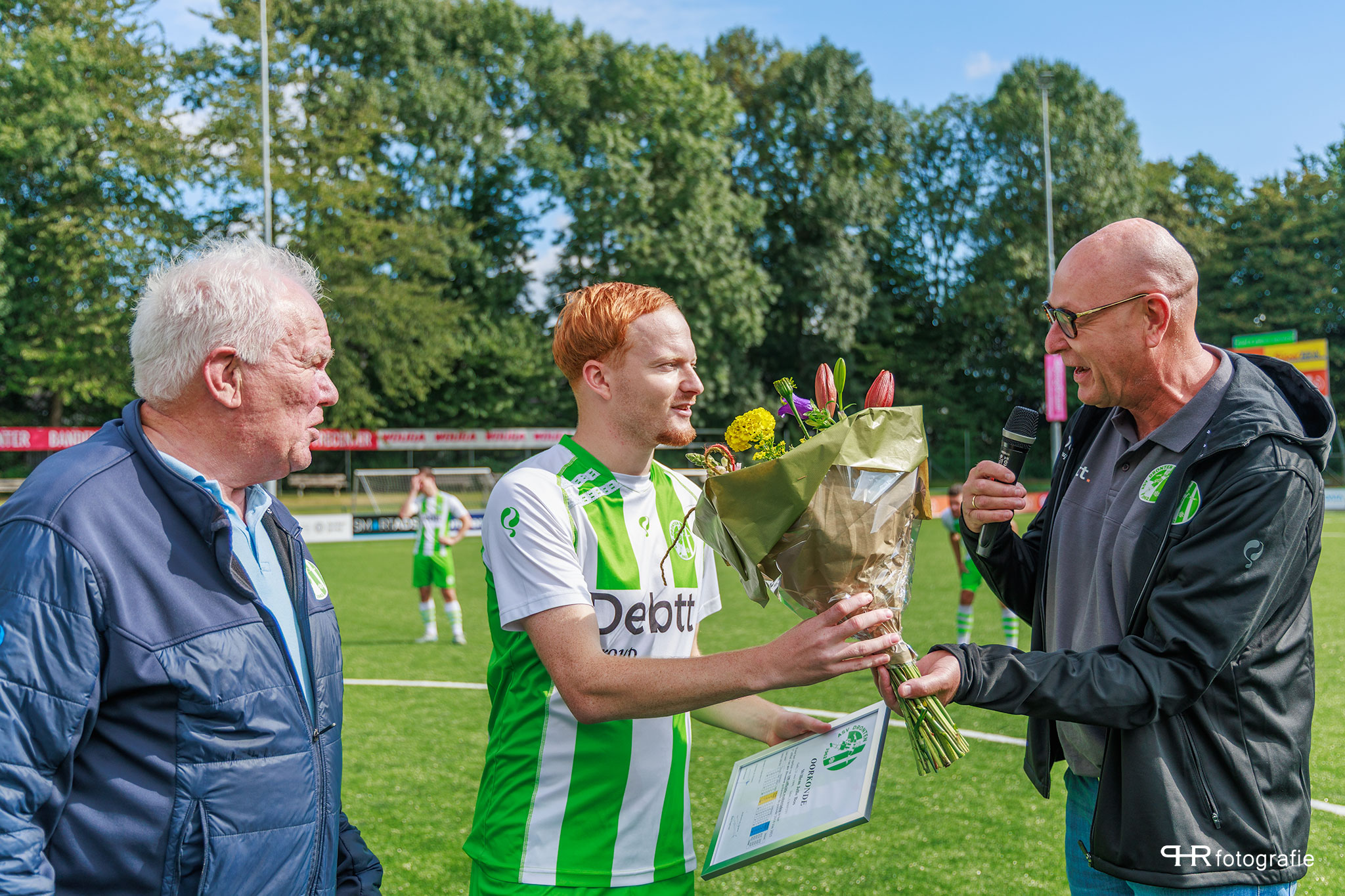 Voor aanvang van de wedstrijd werd Willem Jelle Bos gehuldigd voor zijn 100e wedstrijd in het groen – wit. Of het de bloemen of de revanchegevoelens waren, zullen we niet weten maar Bos was deze middag een van de aanstichtsters van een mooi voetbal uur. Volgende week maar weer een huldiging voor hem organiseren, als dit het verschil maakt.