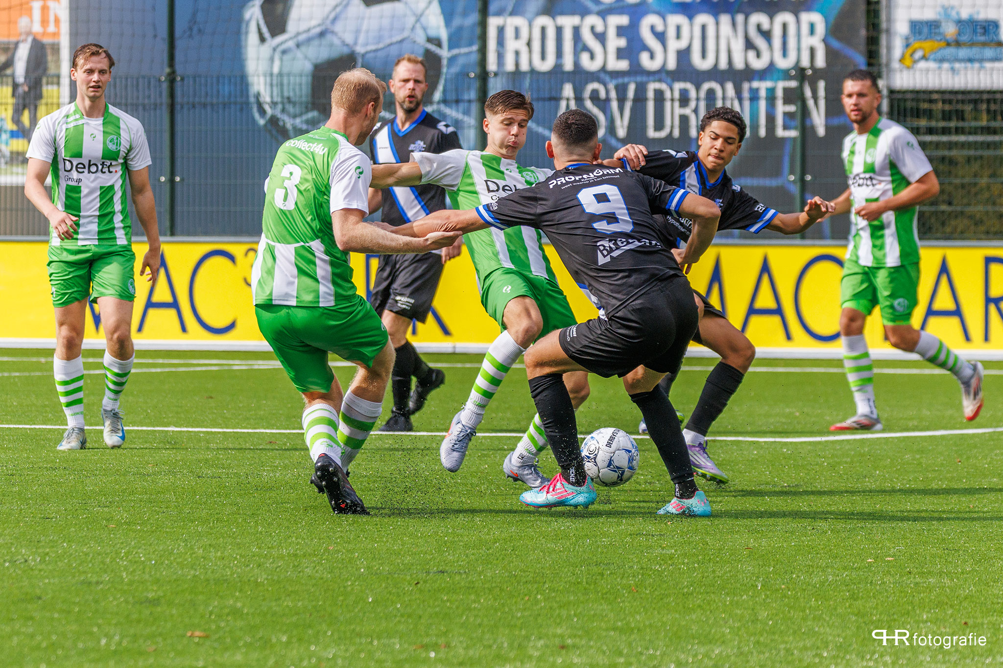 Asv Dronten rook bloed en ging naarstig op zoek naar meer. De zijkanten van het veld werden prima gebruikt en Bos en de Ruiter waren kwelgeesten voor de Kamper verdediging. Het was bijzonder fijn om te zien dat Maikel Bosch in de 24e en 26e eindelijk zijn killersinstinct liet zien. Eerst tikte hij een goede voorzet van Willem Jelle Bos binnen en even later strafte hij verdedigend falen van KHC af. Hopelijk geven deze treffers hem het vertrouwen richting de competitie.