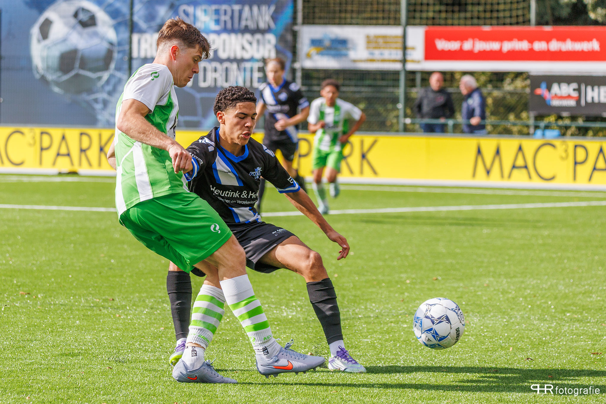 In de 20e minuut kwam asv Dronten wel op 1 – 0. Kyan Ruys mocht op avontuur en zijn poging leek te worden gestuit. De jonge back zag op het laatste moment, de op de punt van de 16 meter vrijstaande, Mike Bastiaan en speelde hem met een lepe bal aan. Bastiaan ontdeed zich op een prachtige wijze van de Kamper verdediger en schoot vervolgens gortdroog binnen.