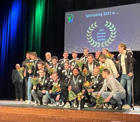 Het eerste elftal van asv Dronten heeft vrijdagavond tijdens de Sportverkiezing in de Meerpaal de titel “Sportploeg van het jaar 2022” weten te bemachtigen. Ondanks zware concurrentie van o.a. de estafetteploeg van de atletiekvereniging Flevo Delta heeft de jury het vlaggenschip van asv Dronten de titel toegewezen. Doorslaggevend was volgens de jury het behaalde kampioensschap in de 2e Klasse en de daarbij behorende promotie. Genoemd werden o.a. de hechte groep die technische staf gekweekt heeft en de overwinningen op de ploegen uit Lelystad.