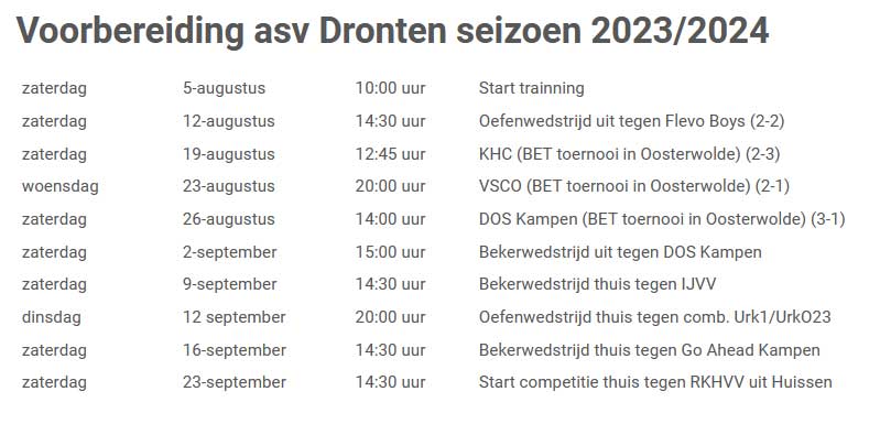 Voorbereiding asv Dronten seizoen 2023/2024