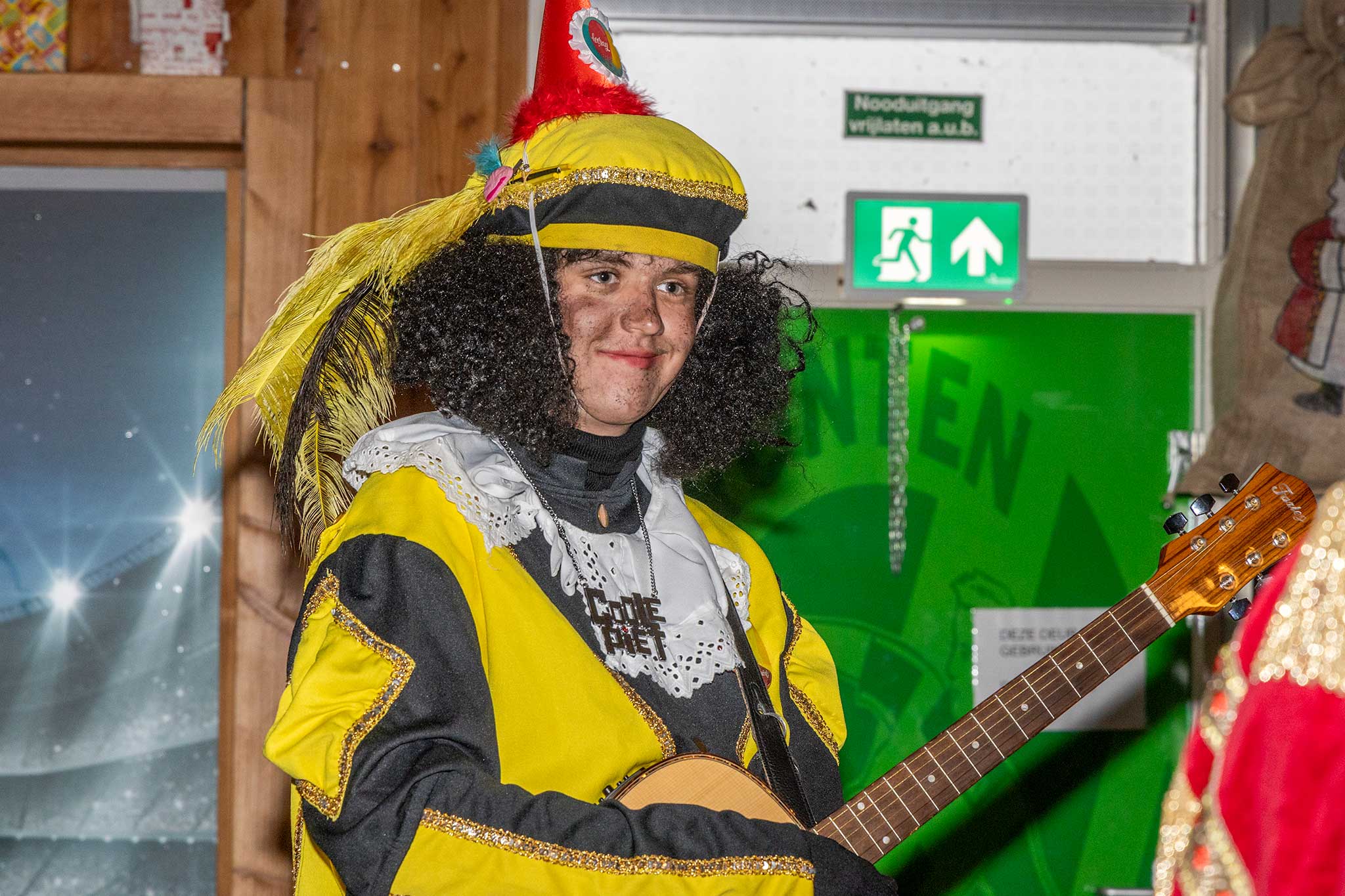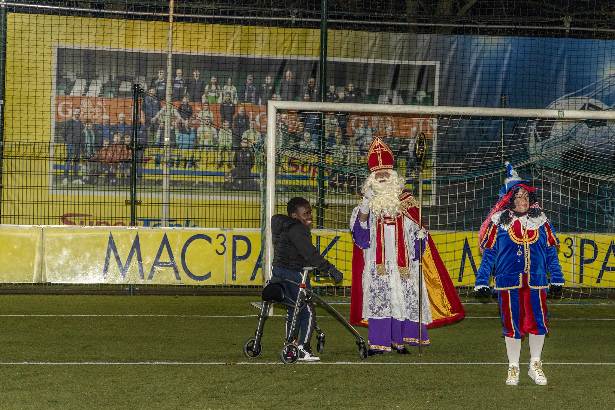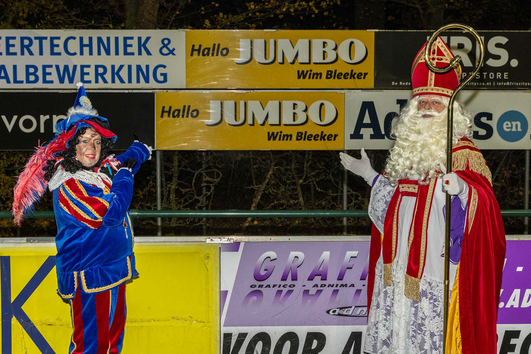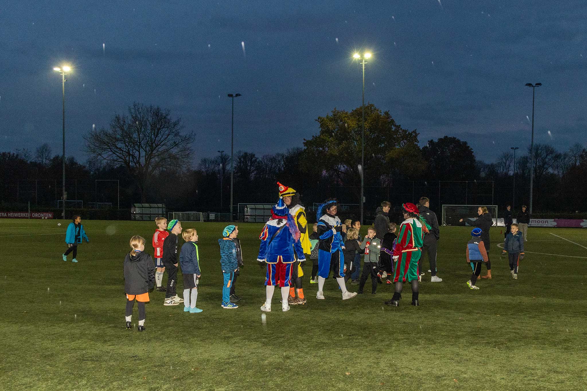 Op het veld werden er met de Pieten voetbal spelletjes gedaan en binnen werd iedereen welkom geheten door gastvrouw Jenny Kijk in de Vegte.