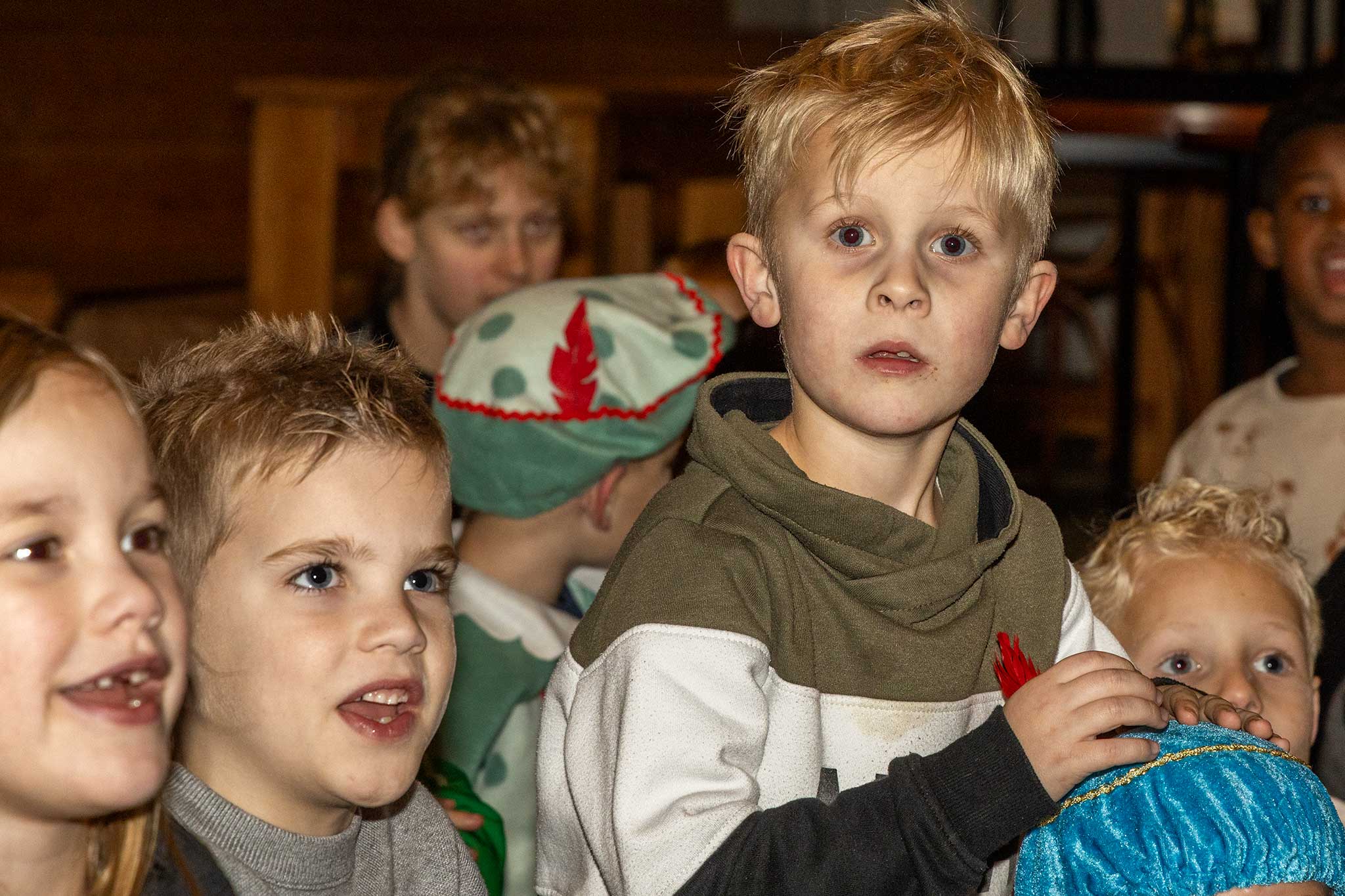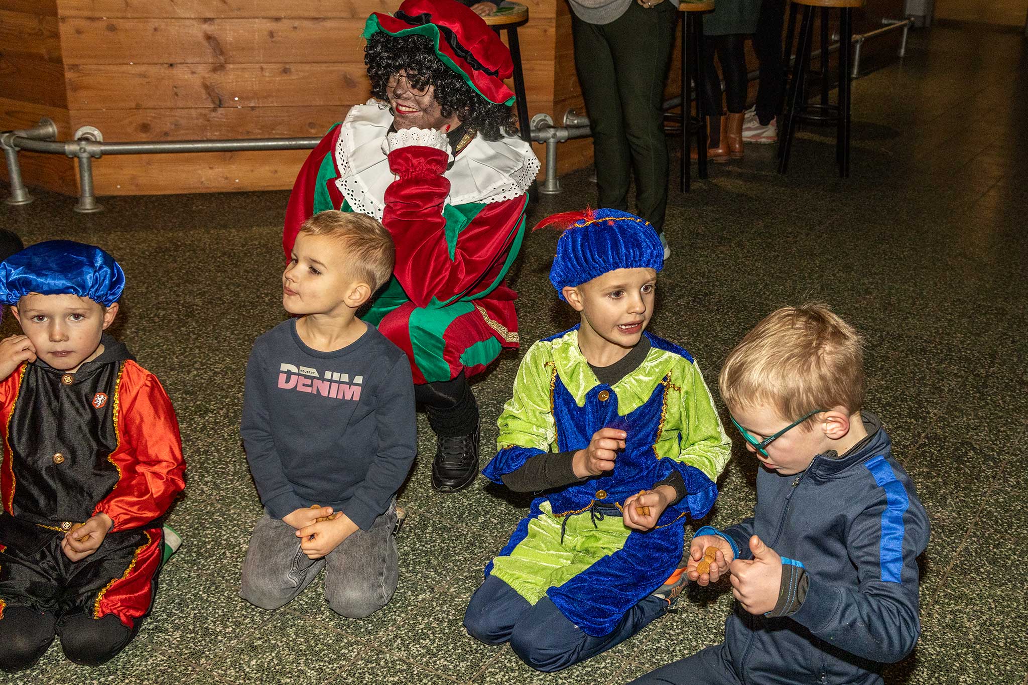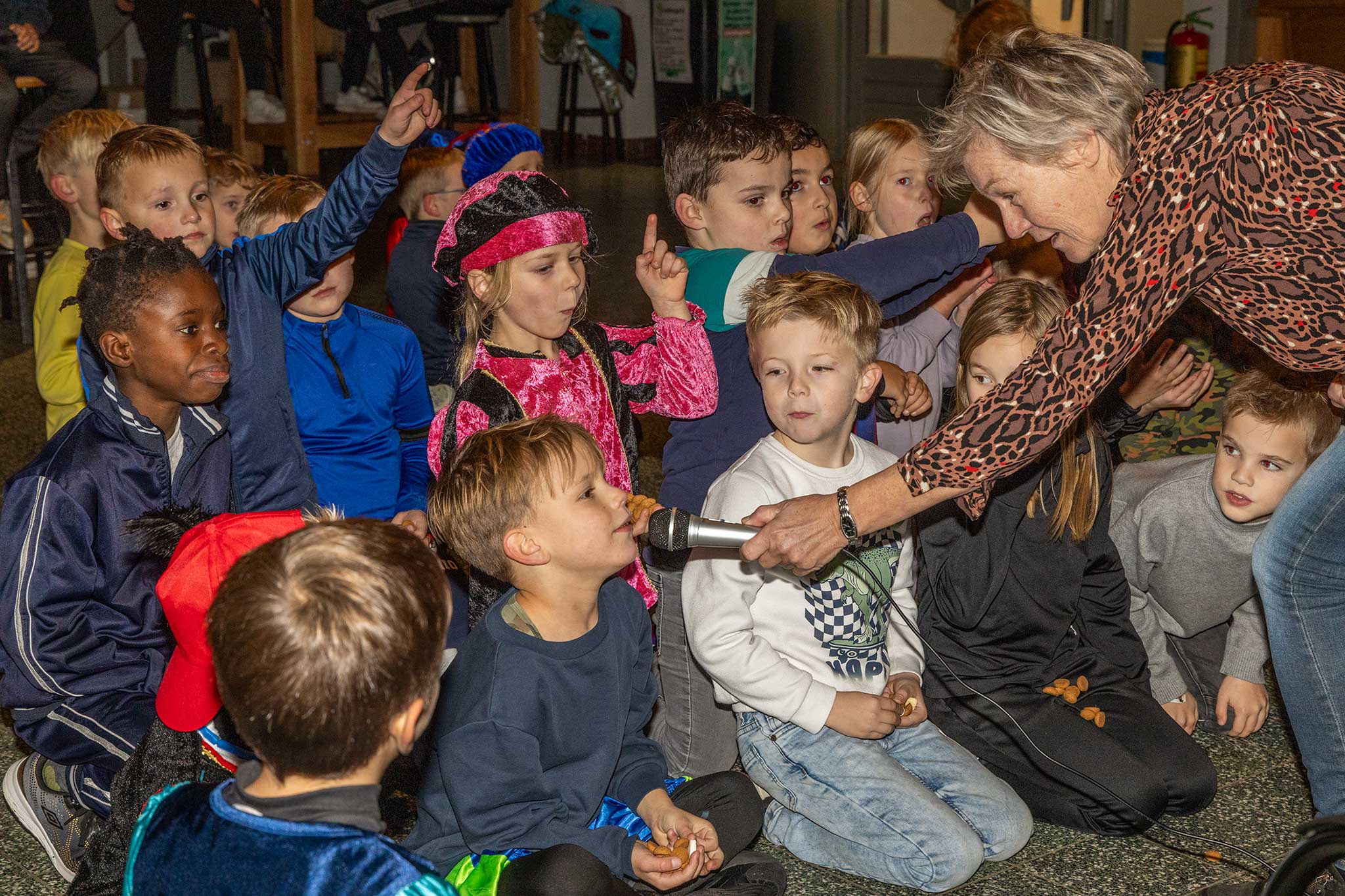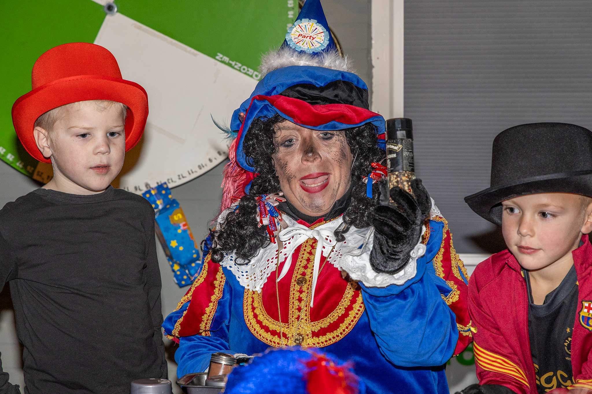 Samen met de jarige gitaar-piet werden er liedjes gezongen en de goochel-pieten deden een goochel truc waarbij de kinderen met verbazing naar keken.