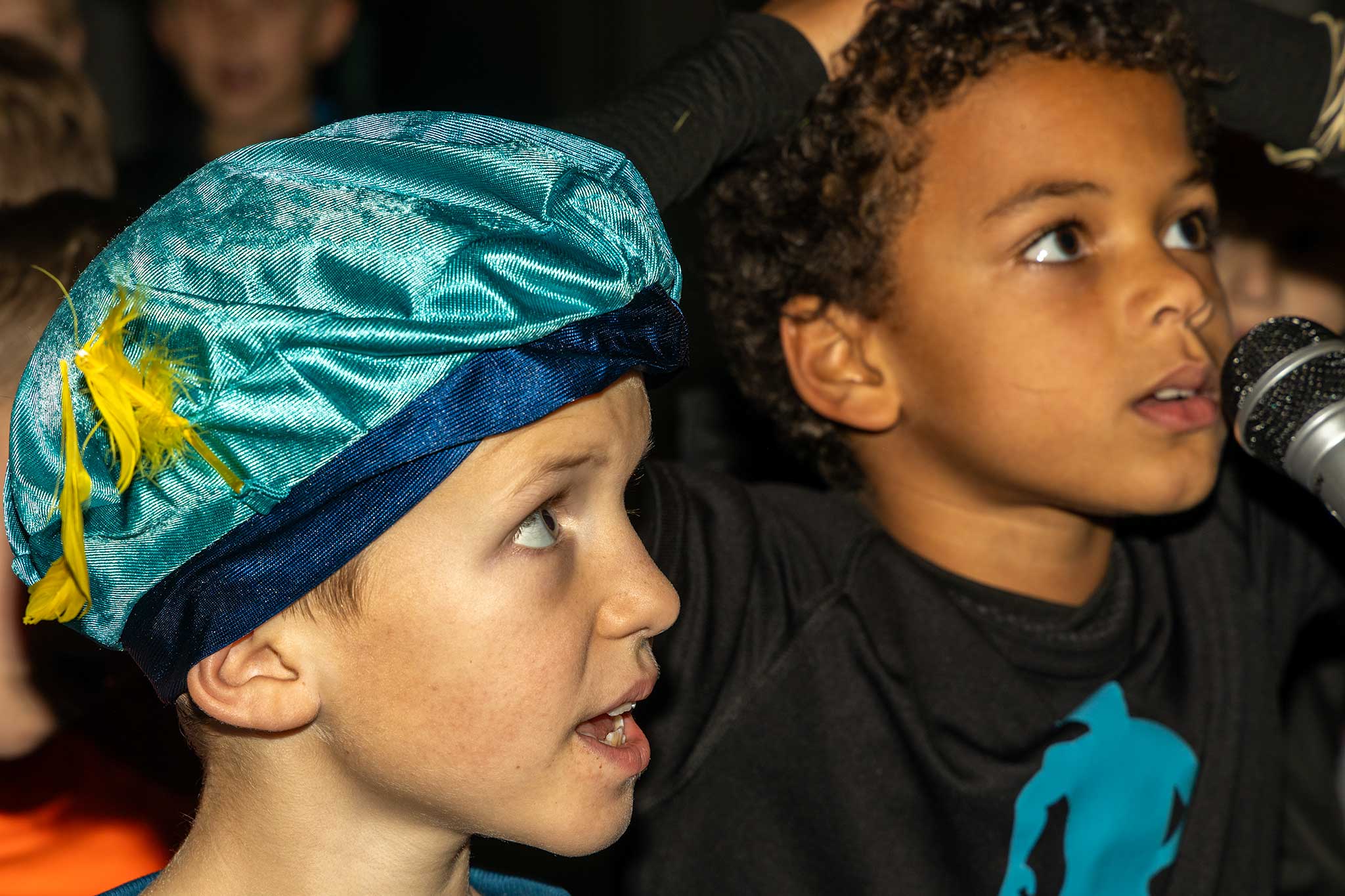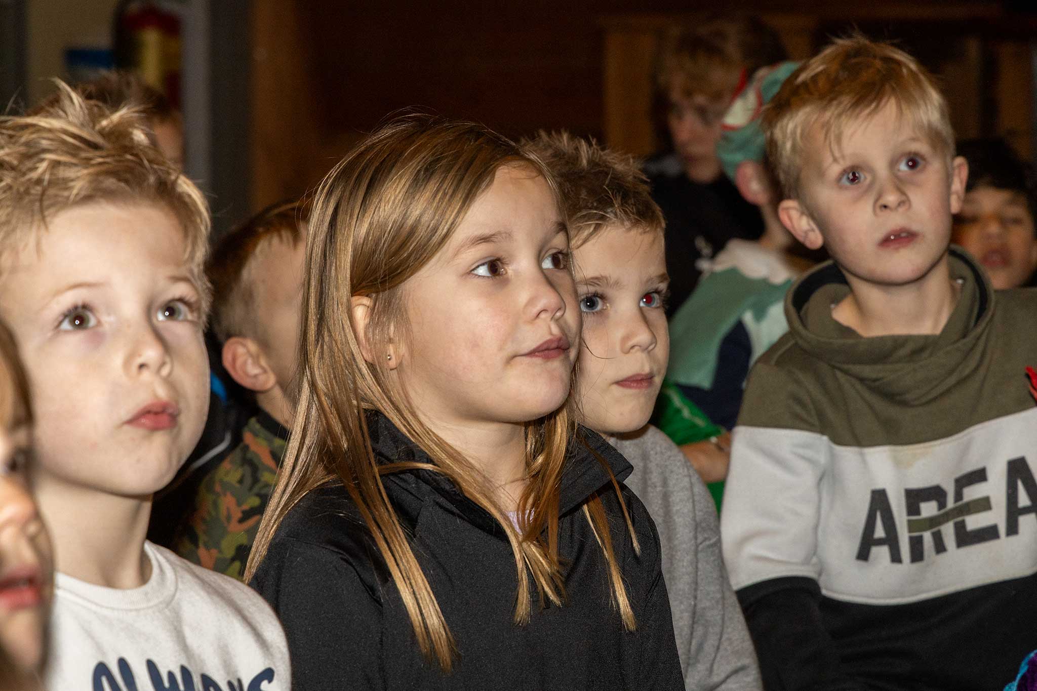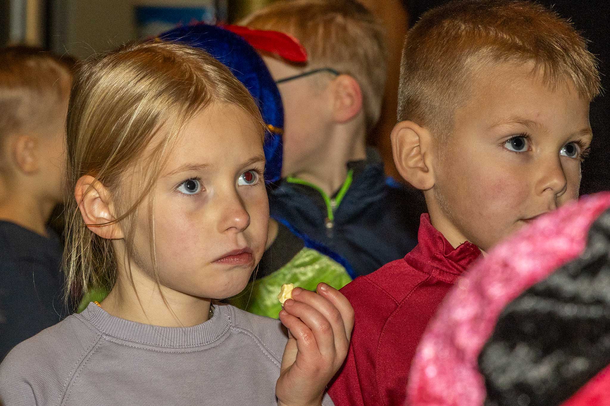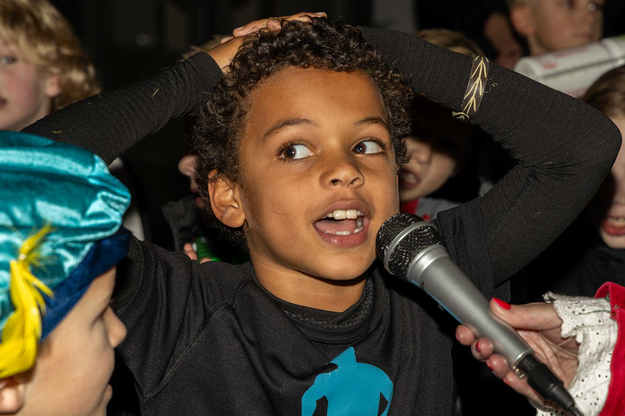 Samen met de jarige gitaar-piet werden er liedjes gezongen en de goochel-pieten deden een goochel truc waarbij de kinderen met verbazing naar keken.