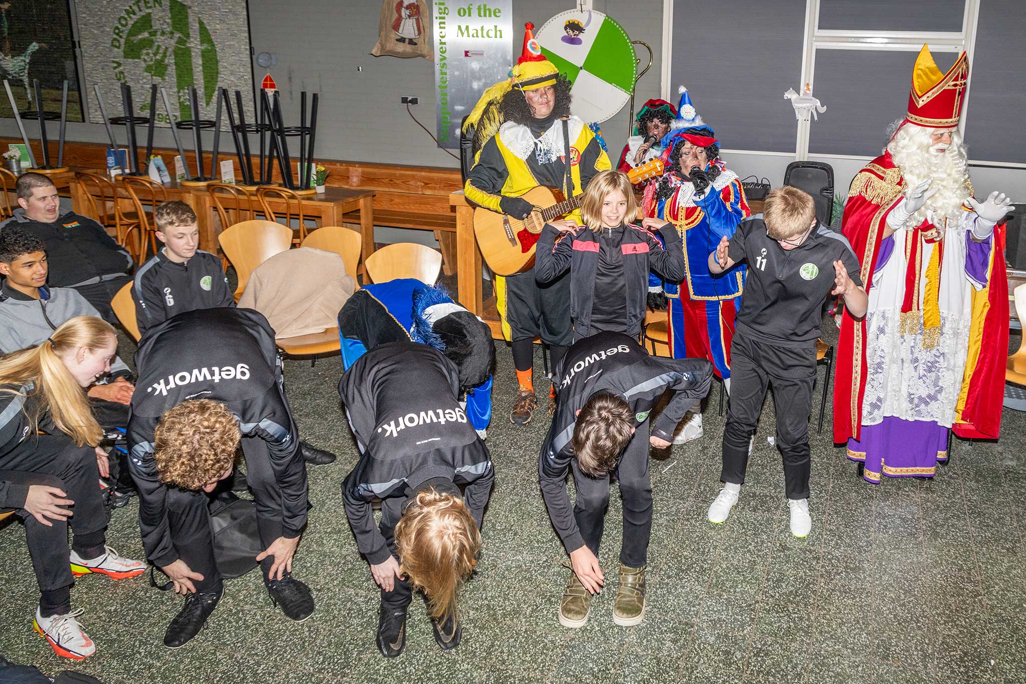 Ook dit jaar kwamen Sinterklaas en zijn Pieten op bezoek bij asv Dronten.