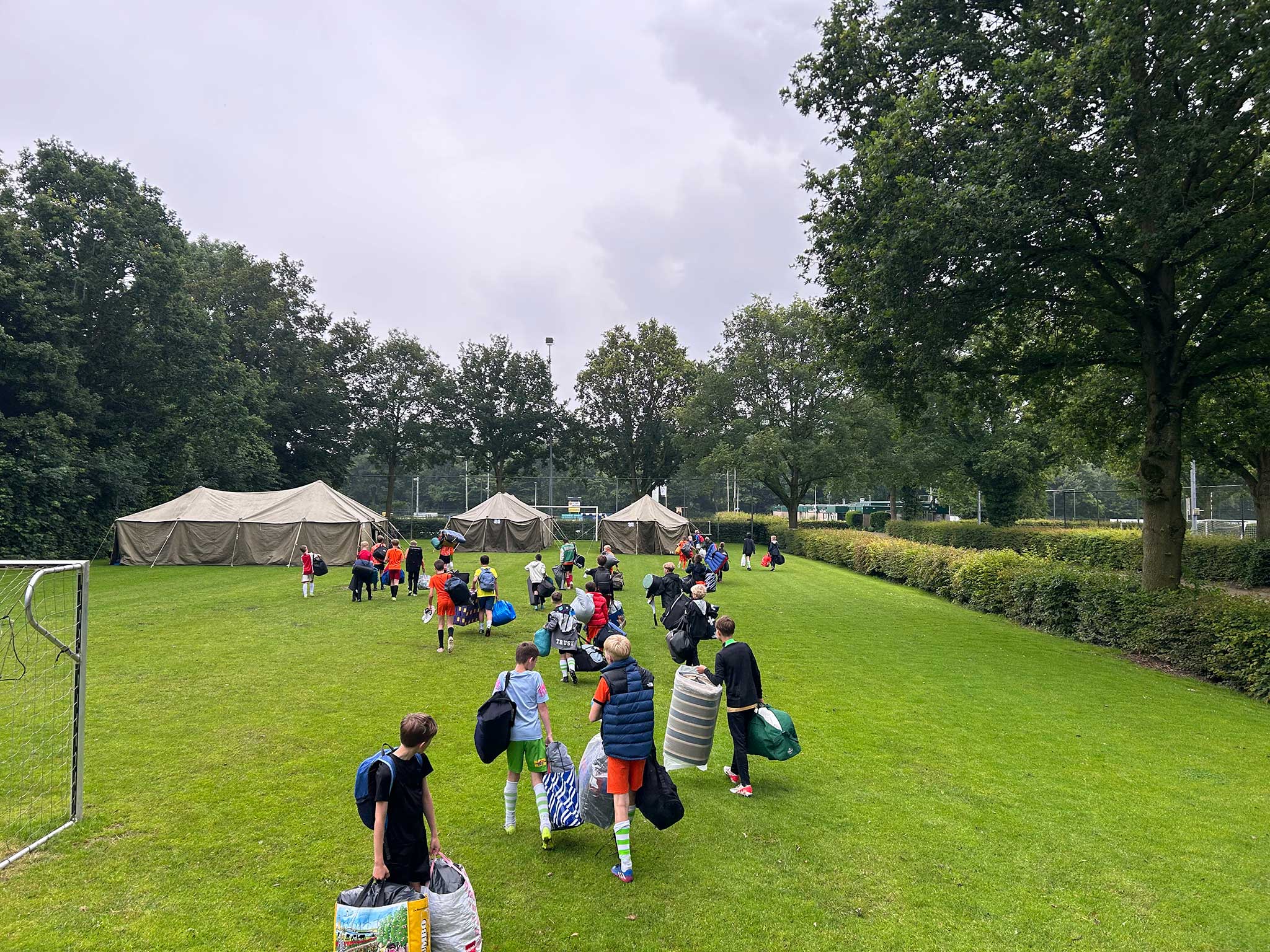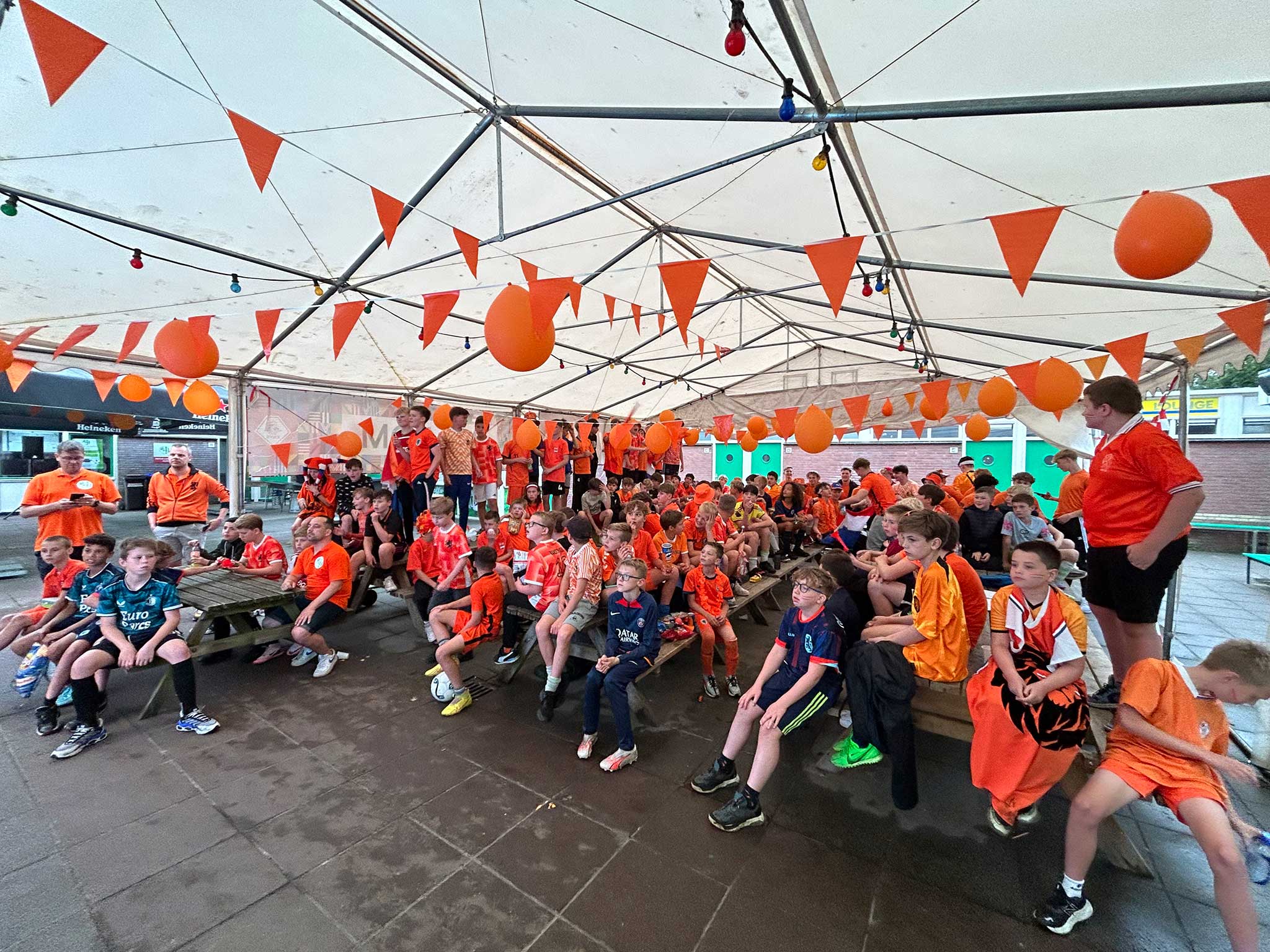 Met de hulp van enkele vrijwilligers stonden 4 grote legertenten klaar op het park, na het avondeten werden alle slaapspullen klaargelegd en ging men zich omkleden voor de grote voetbalwedstrijd Nederland – Frankrijk. Op het plein was ondertussen een groot scherm geïnstalleerd en fanatiek werd door alle kinderen het Wilhelmus meegezongen. Gedurende de wedstrijd werden de spelers van Oranje luidkeels aangemoedigd, dat moeten ze gehoord hebben in Duitsland. De spanning steeg flink gedurende de wedstrijd en de ontlading en het gejuich was dan ook enorm toen er eindelijk gescoord werd.